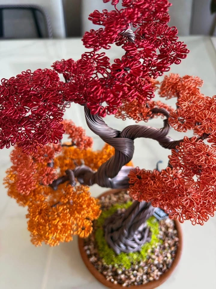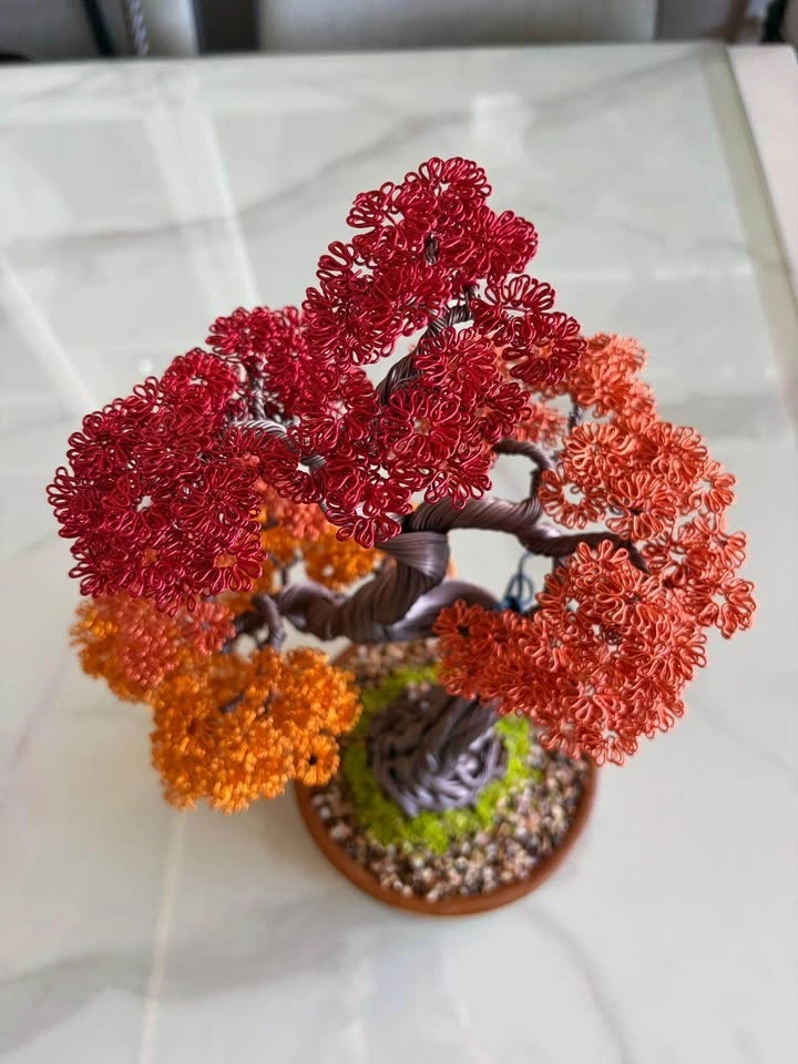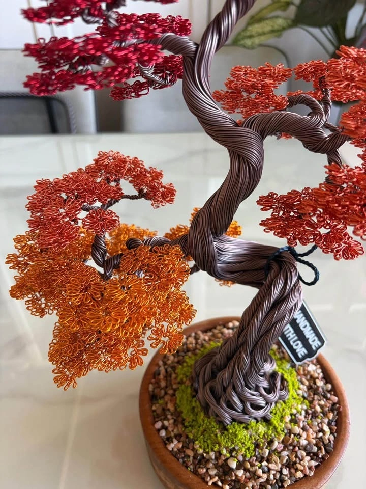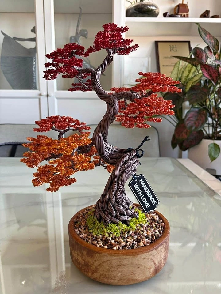 This autumn bonsai brings a warm, rustic charm to any space. Its metallic leaves shimmer beautifully under natural light, creating a peaceful and artistic vibe. A perfect centerpiece for your home this fall or a heartfelt handmade gift that symbolizes change, strength, and harmony.