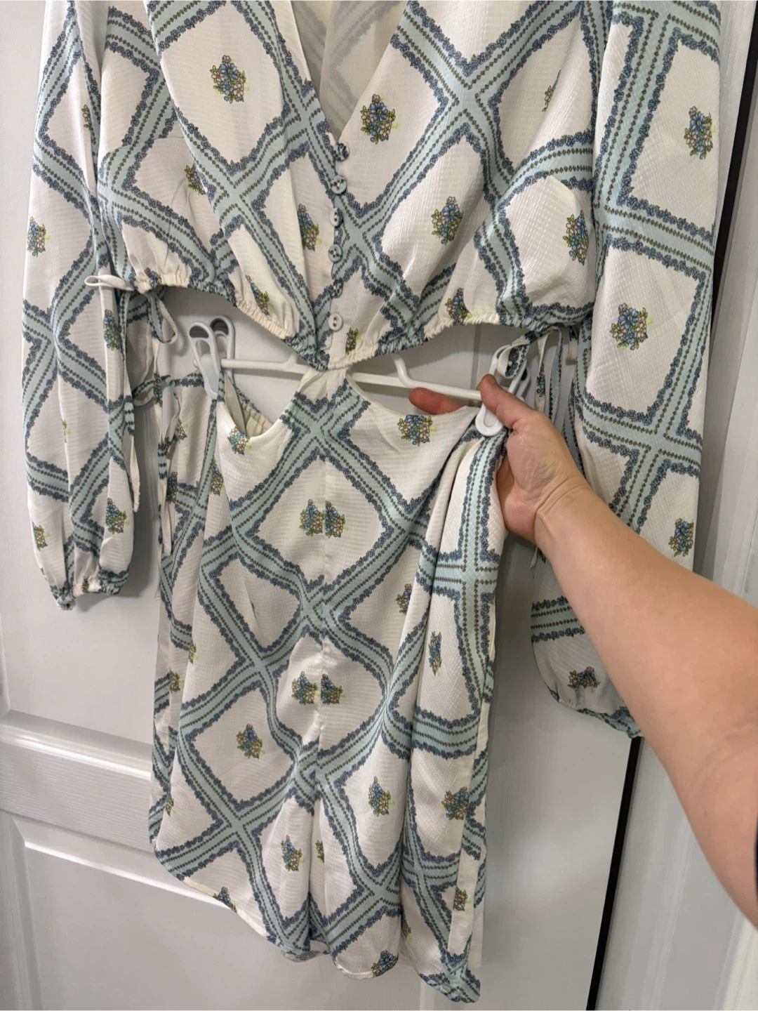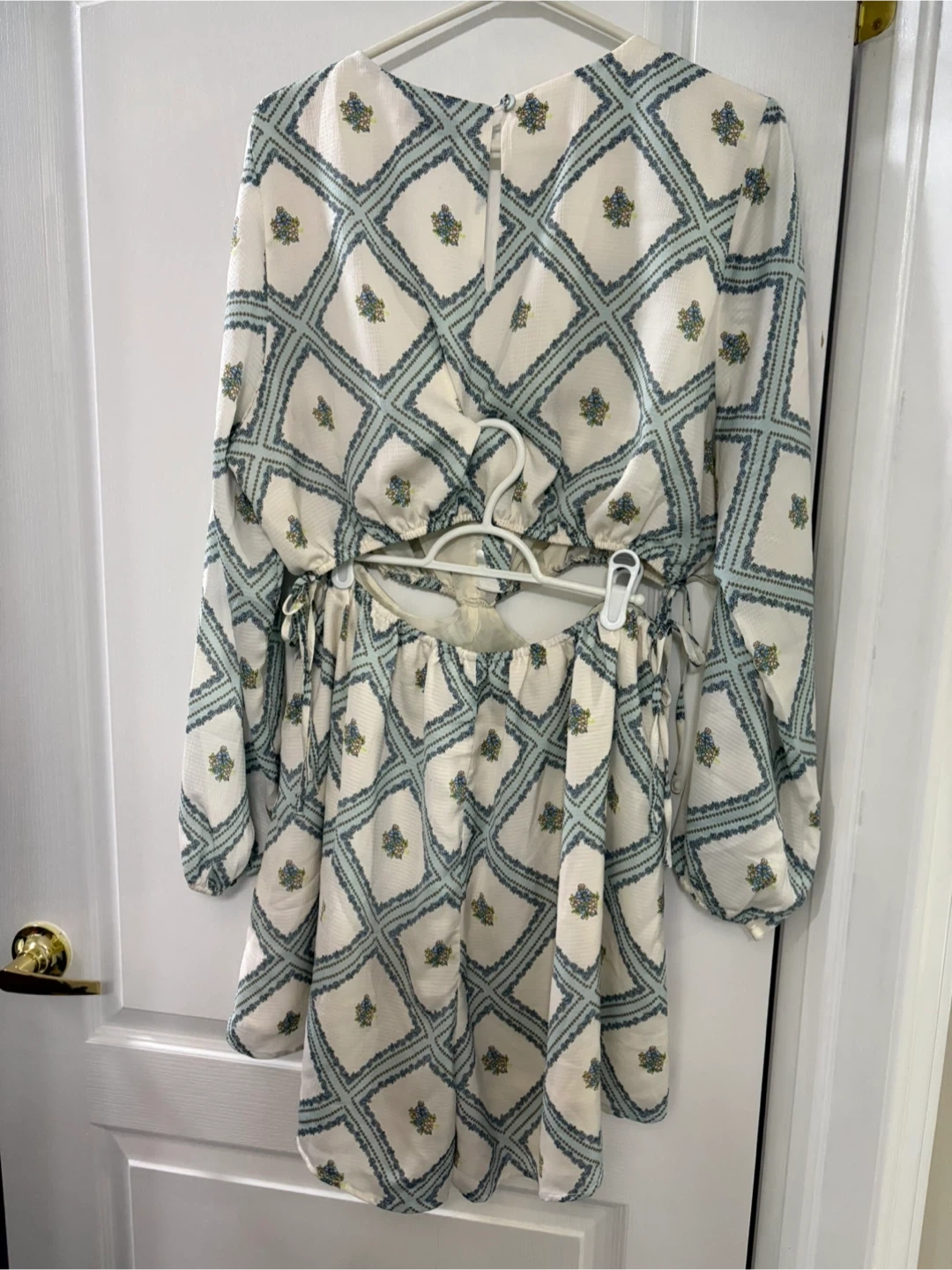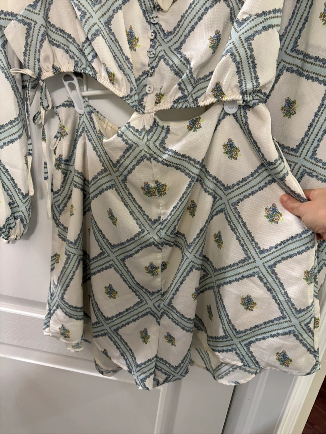 This is a cute romper from Forever 21 size XL. It features a unique floral and diamond pattern