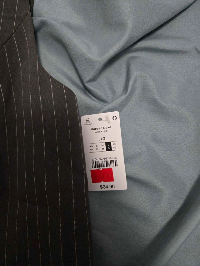 This new vest is a stylish addition to any wardrobe, featuring a classic pinstripe pattern and a flattering silhouette, perfect for layering or wearing on its own. Never worn, still has original tags! Here are some additional details: * Brand: Wardendove * Size: L/G * Colour: Grey with white pinstripes * Style: Vest * Condition: New with tags If the ad is up, it's available!