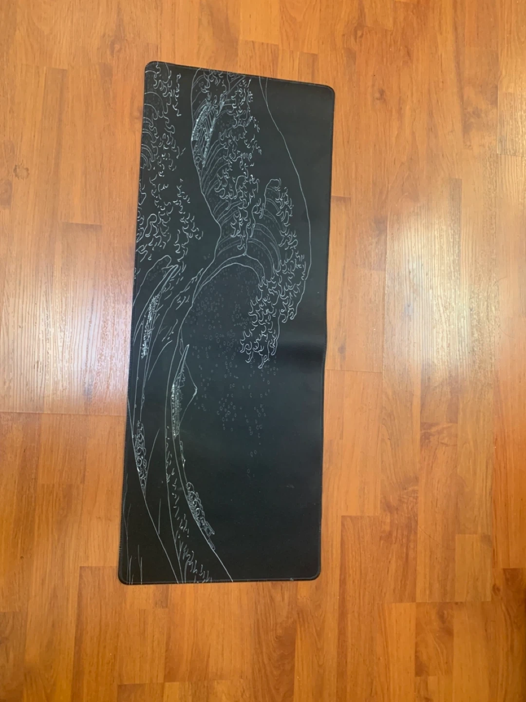 Selling a black desk mat with a wave design. It is in used condition and has some minor wear and tear. Perfect for adding a touch of style to your workspace!