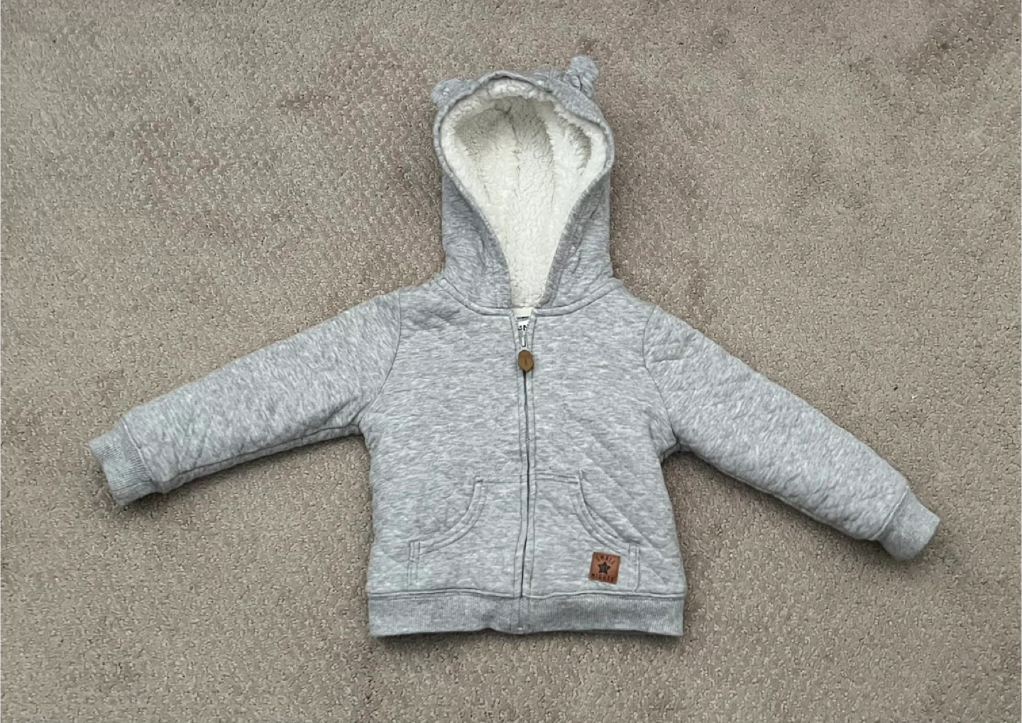 Cozy and warm Simple Joys by Carter's hoodie for your little one! This adorable grey hoodie is size 24M and features a soft fleece lining to keep your baby comfy on cooler days