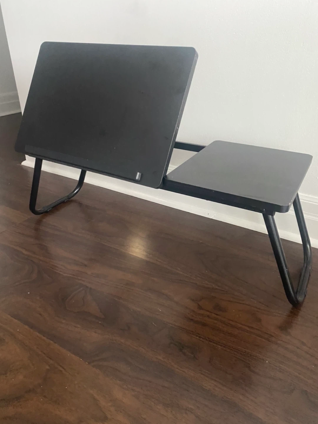 Selling a foldable bed desk in black! It's perfect for working or enjoying breakfast in bed. It's lightweight and portable, making it easy to store when not in use