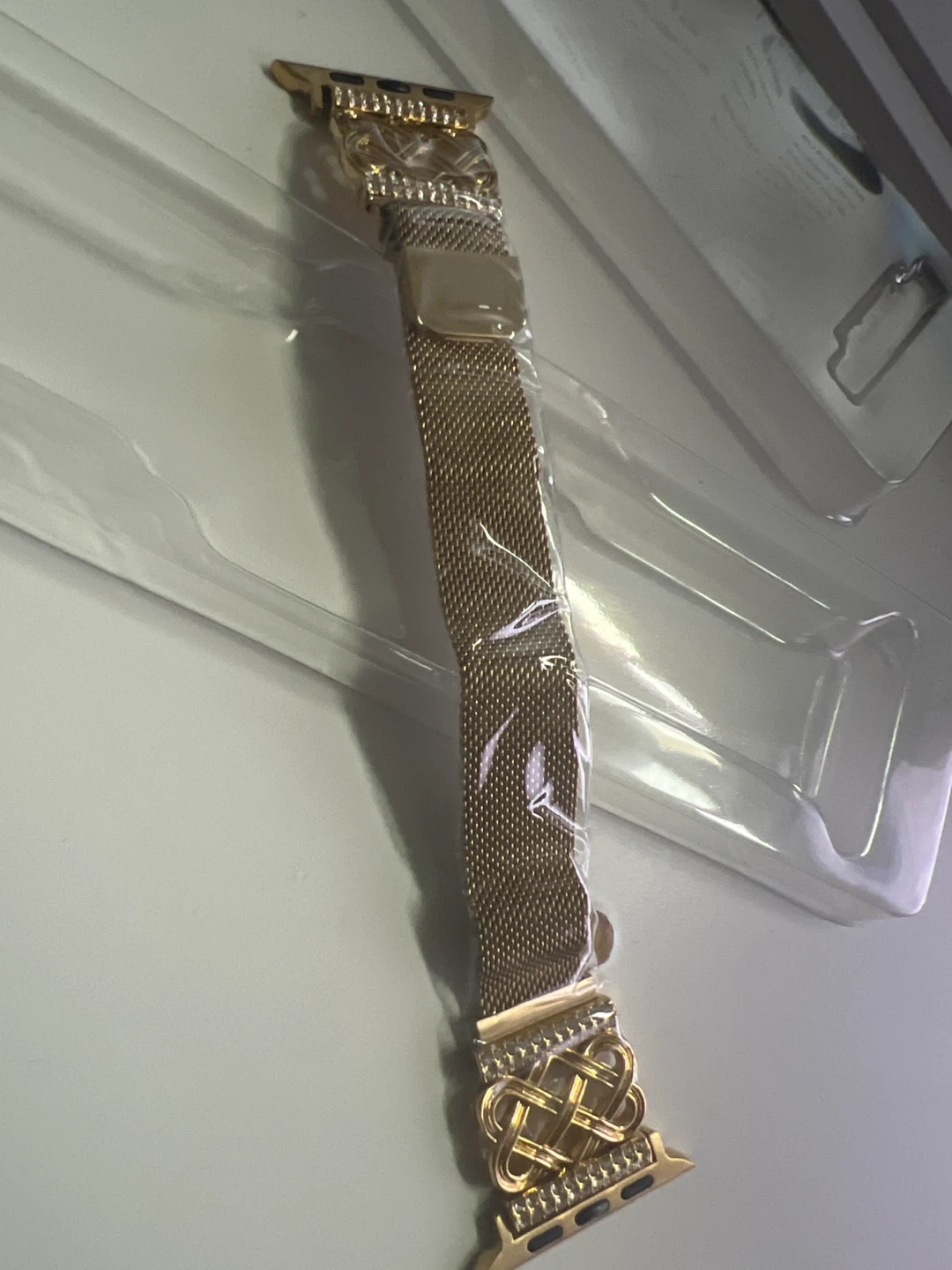 Selling a brand new gold Apple Watch band, still in its original packaging! It has a beautiful design and is ready to add a touch of elegance to your Apple Watch
