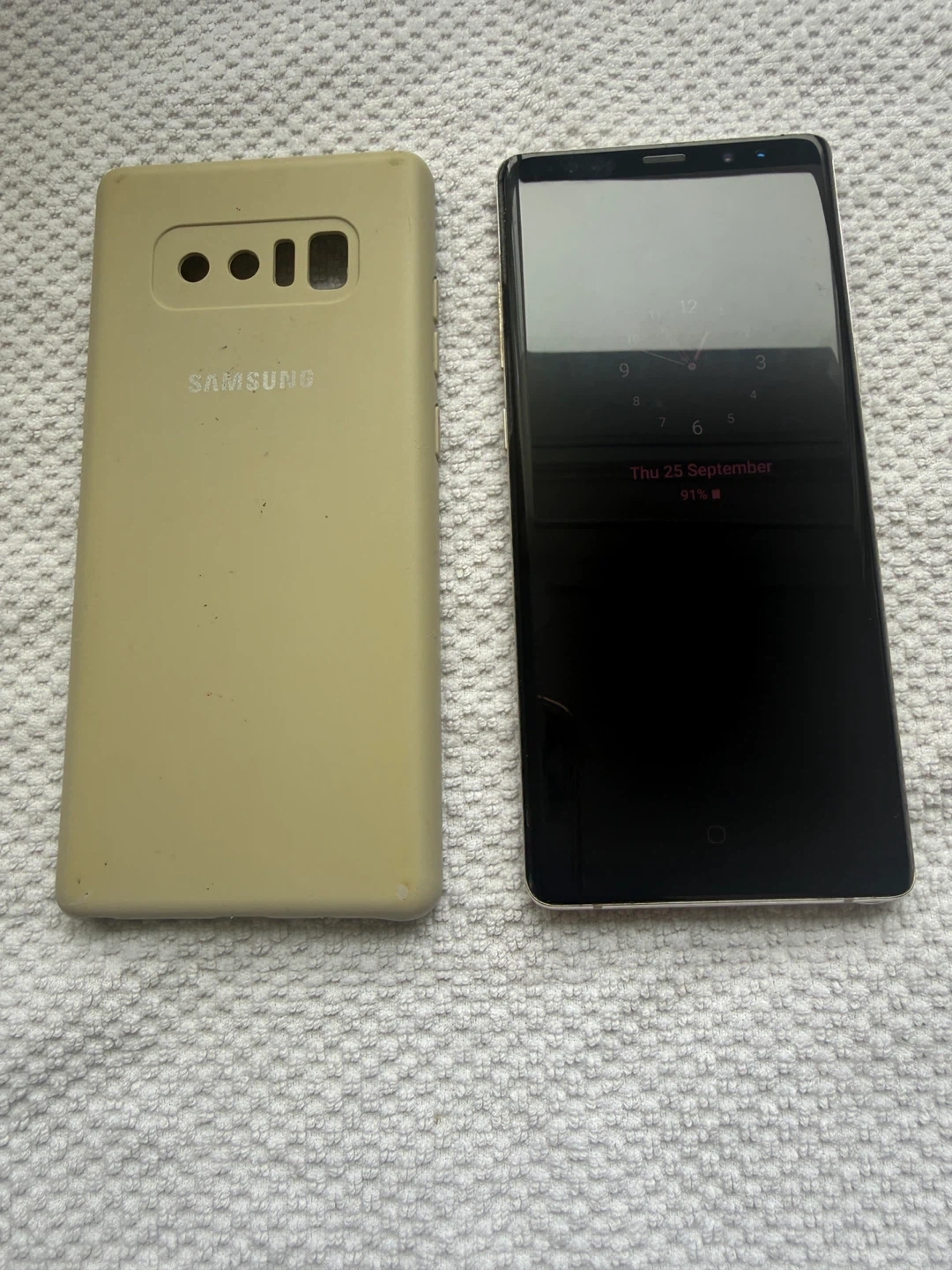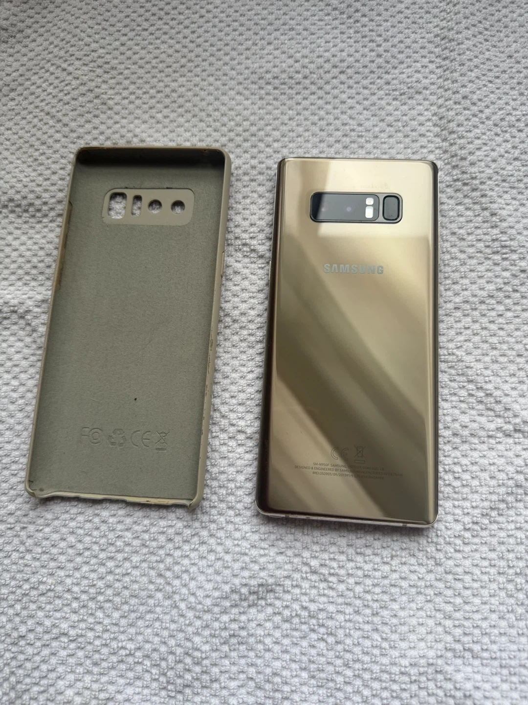 Selling a Samsung Galaxy Note 8 64 GB in gold, comes with a case. In perfect condition with no scratches. Includes 128 GB memory card, stylus, charger and cable. Great as an extra phone for travel to the USA.