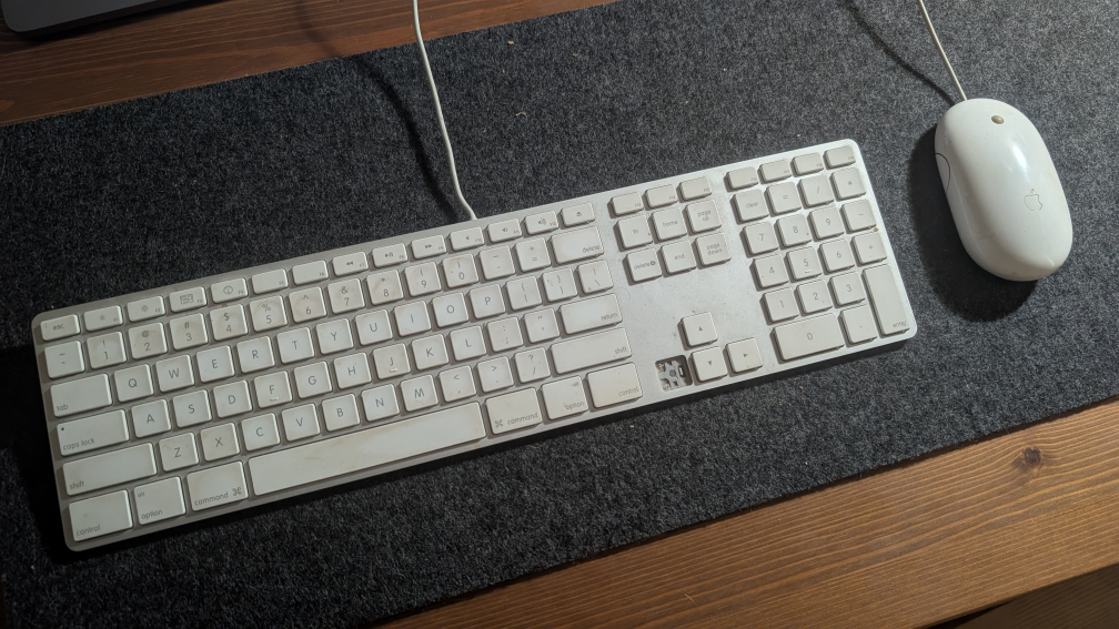 comes with an Apple magic mouse and magic keyboard (missing right arrow key but still works)