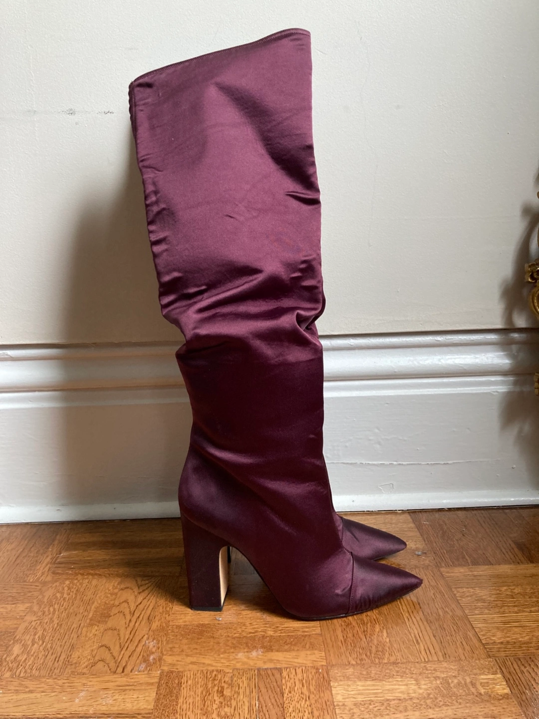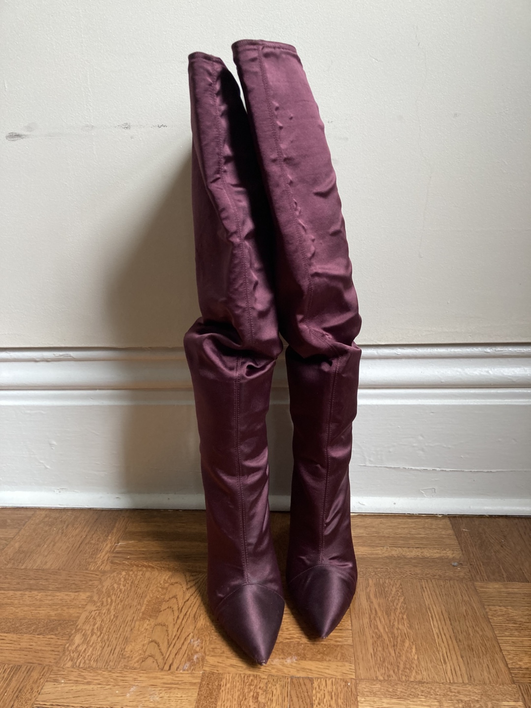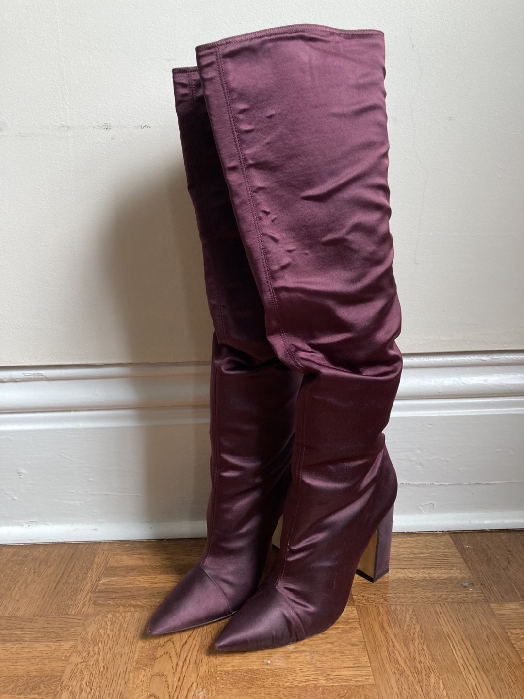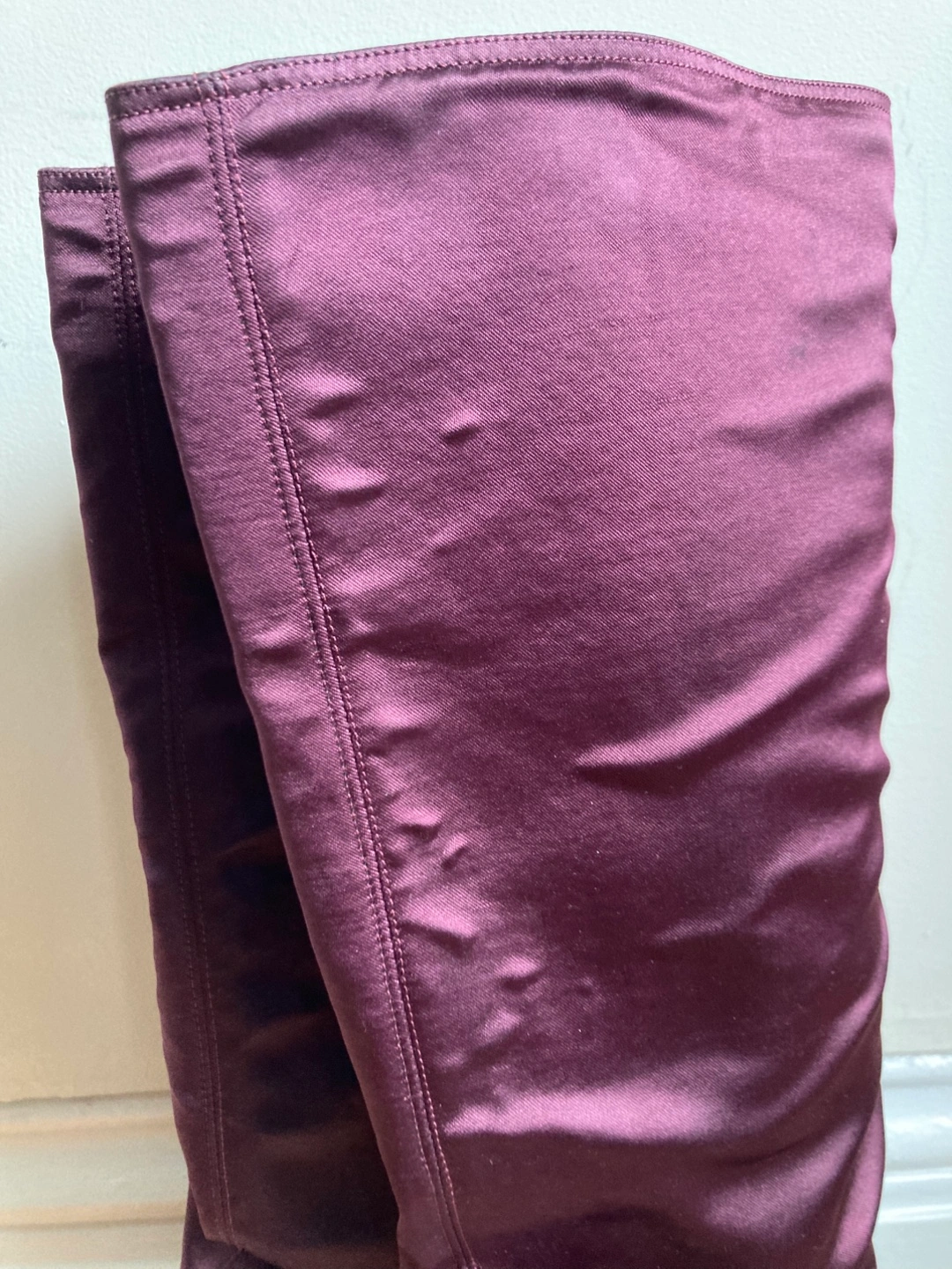 Burgundy Satin Knee High Boots