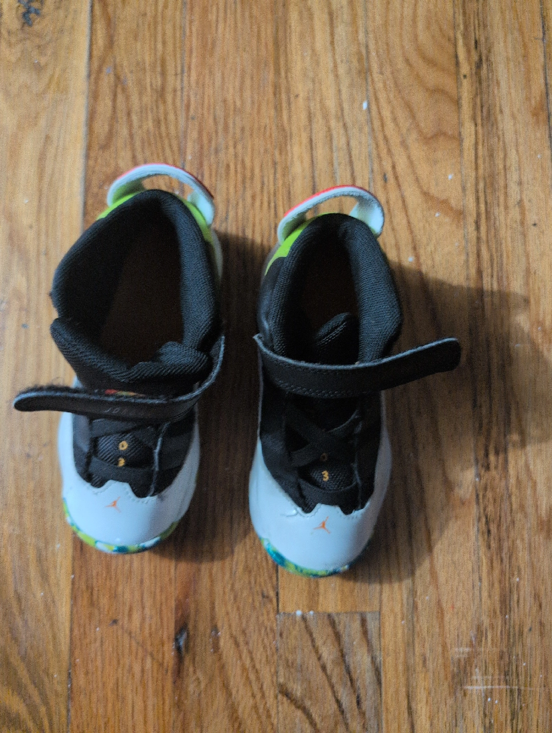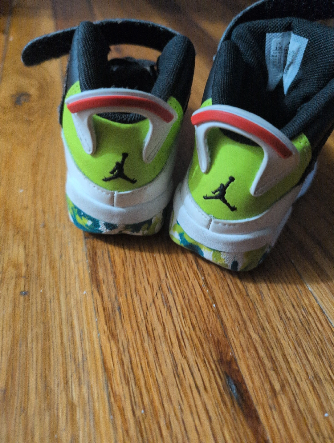 Selling a pair of Jordan Jumpman 2021 toddler shoes in size 10C. They're in great shape and ready for a new home! These shoes feature a black, white, and green color scheme with the iconic Jumpman logo