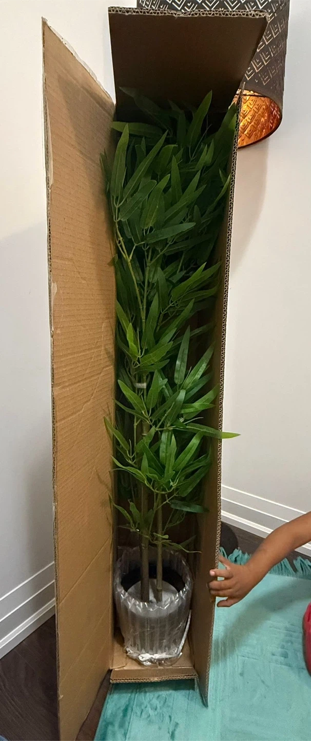 Selling a faux bamboo tree that would look great in any room! It comes in a pot and is easy to move around. It is in great condition and comes with the original box
