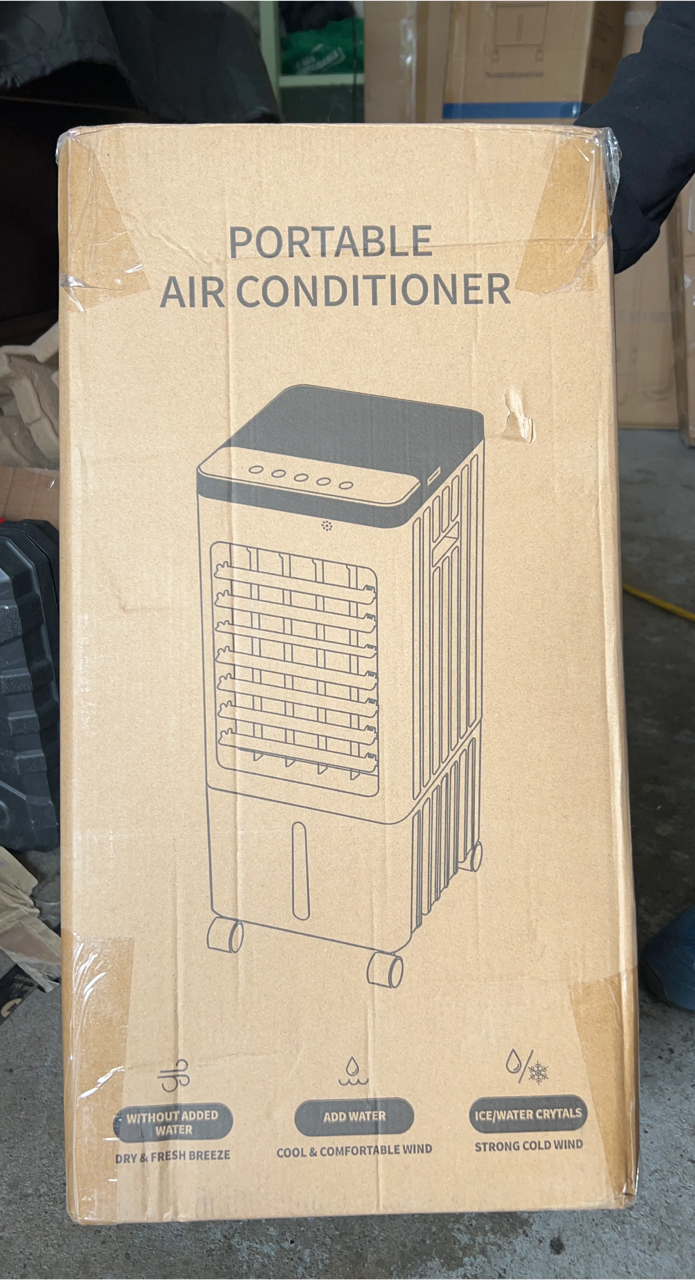Selling a brand new portable air conditioner! The box indicates it can be used without added water for a dry and fresh breeze, or with water for a cool and comfortable wind. You can even add ice/water crystals for a strong cold wind. Get ready for summer!
