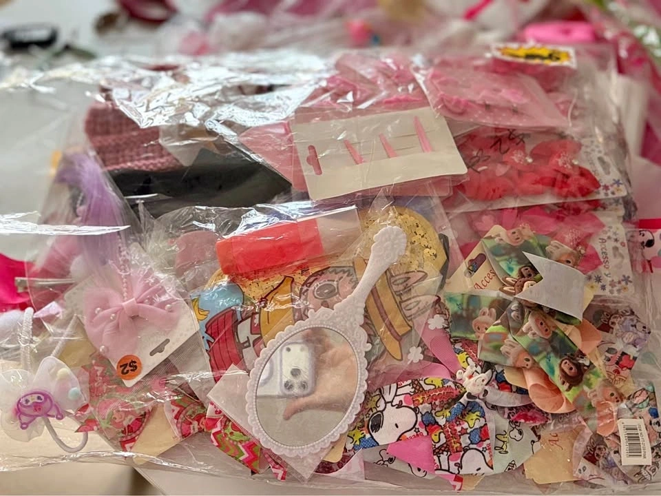 Selling a large box full of new assorted items, perfect for resellers or gift shops. Items include: Girls and women’s purses, backpacks, pencil cases, tumblers, pens, keychains, Crocs charms, Labubu plush, stuffed animals, hair clips for girls, headbands, notebooks, and more. Price for everything: $500. Selling the whole lot together. Pick up in Melrose Park.