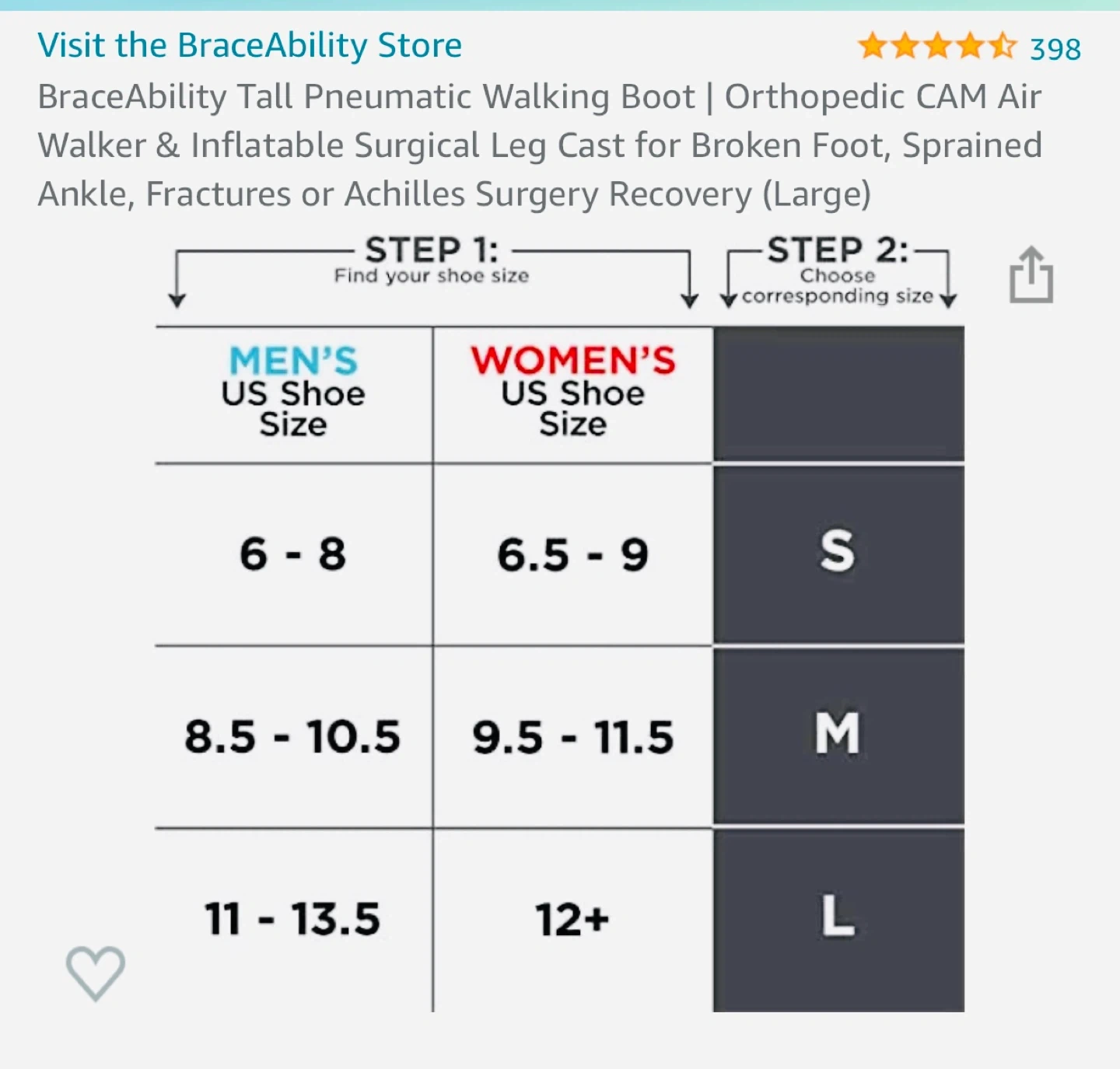 Selling a BraceAbility Tall Pneumatic Walking Boot in size Large! It's an orthopedic CAM air walker and inflatable surgical leg cast. Originally bought for $59.99.