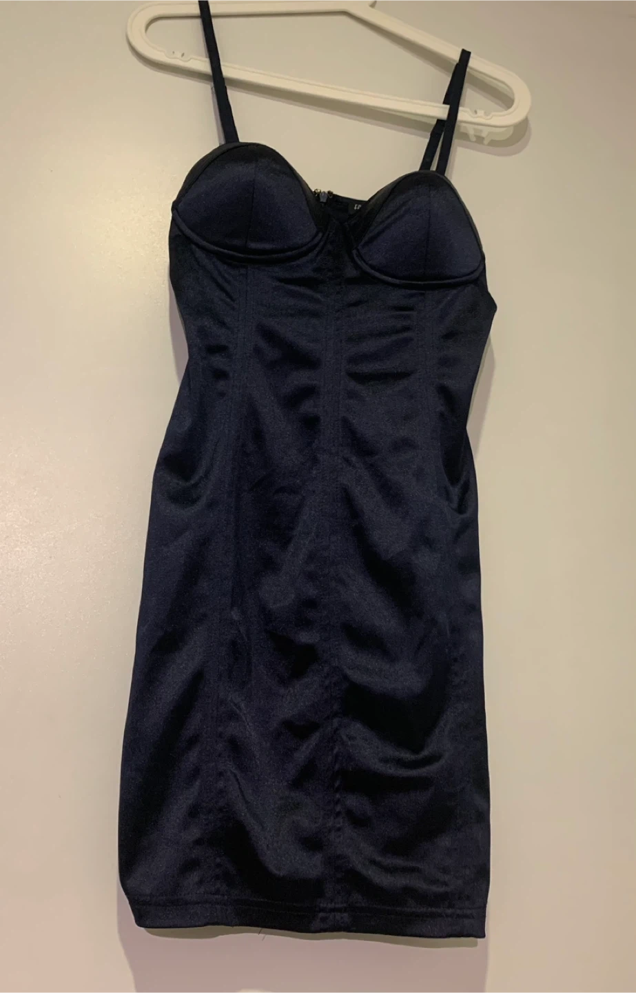1. (Used once) Fashion Nova Satin Dress - Navy, Size M (slide 1-3) $25 SOLD
