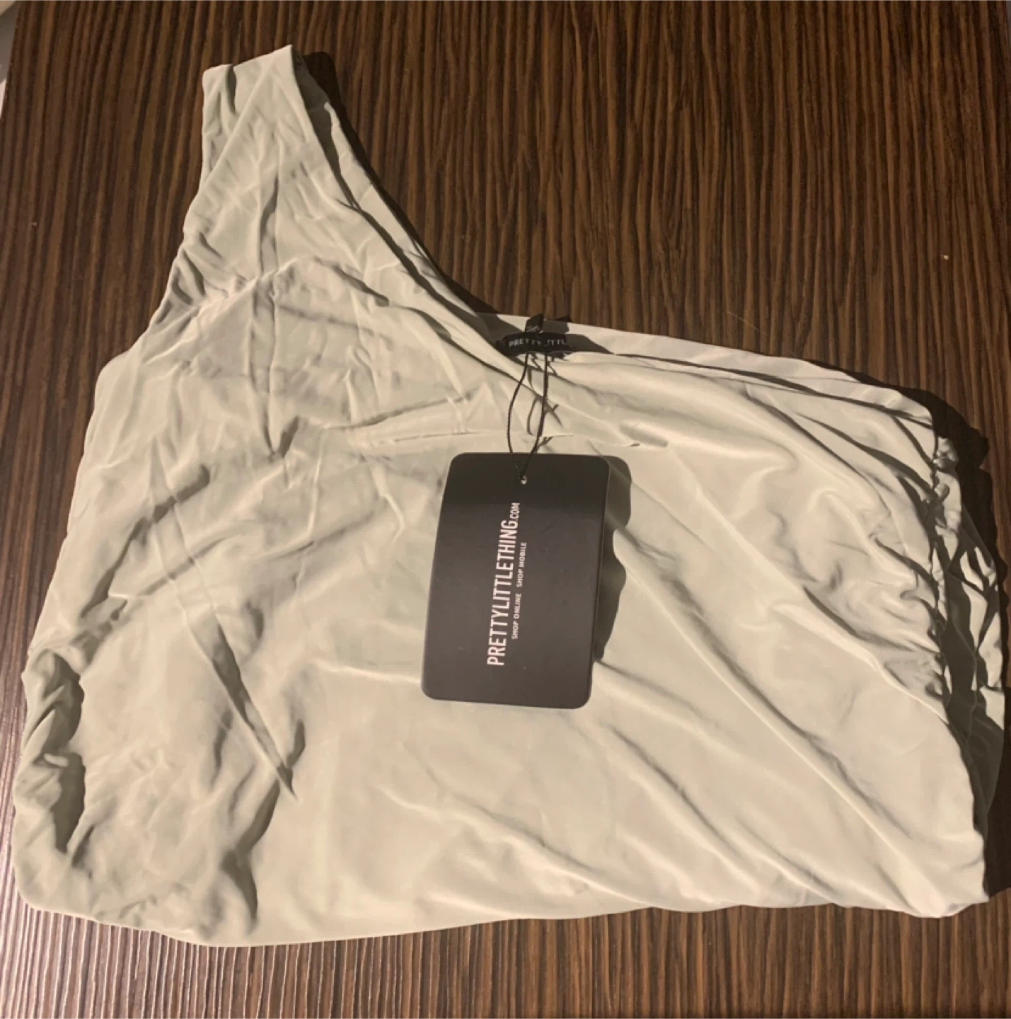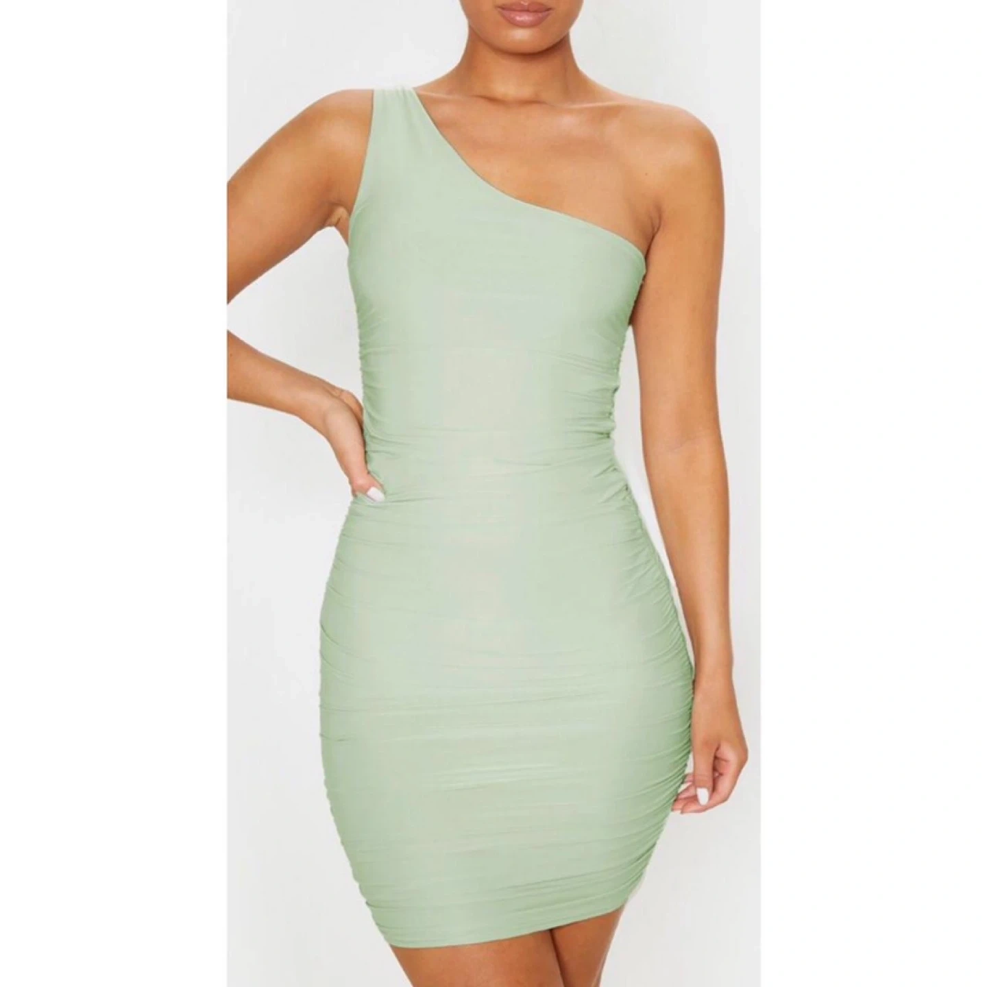 4. (NEW) PLT One Shoulder Ruched Bodycon Dress - Sage Green, Size US 10 (slide 9-10) $10