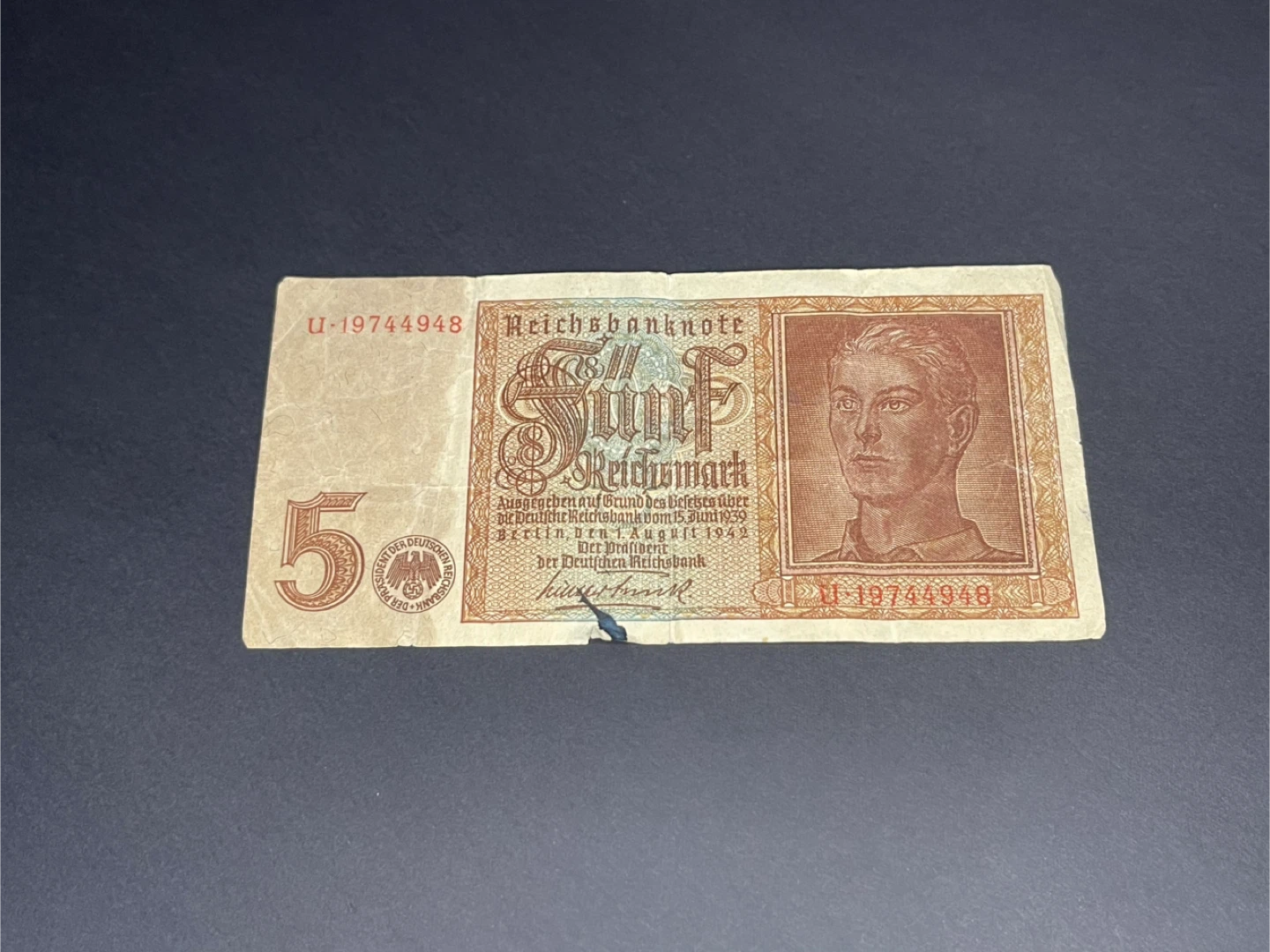 1 / 31 / 3Buy & Sell5 reichsmark | Germany - 19425 reichsmark | Germany - 1942$7Collection downsizing! A piece of history! WWII banknote in good condition considering its age and what it might have been through.WHERE TO MEETBathurst-Eglinton areaView MapSELLERverifiedAttilaForest Hill N21114 reviews1 chats·3 favorites·36 viewsSEND CHAT TO SELLERHi Attila! I’m interested in your listing.Hi Attila! I’m interested in your listing.Get the Karrot app to chatSign In to chat