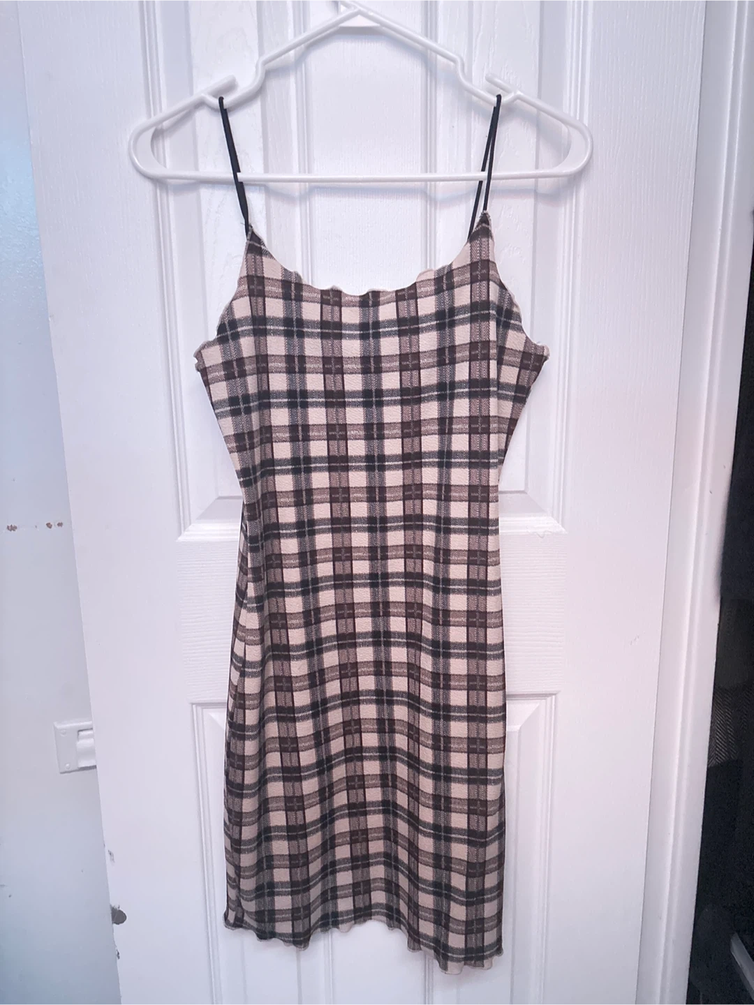 Cute plaid cami dress! It's perfect for layering or wearing on its own. The material is soft and comfortable, making it a great addition to your wardrobe for a casual yet stylish look