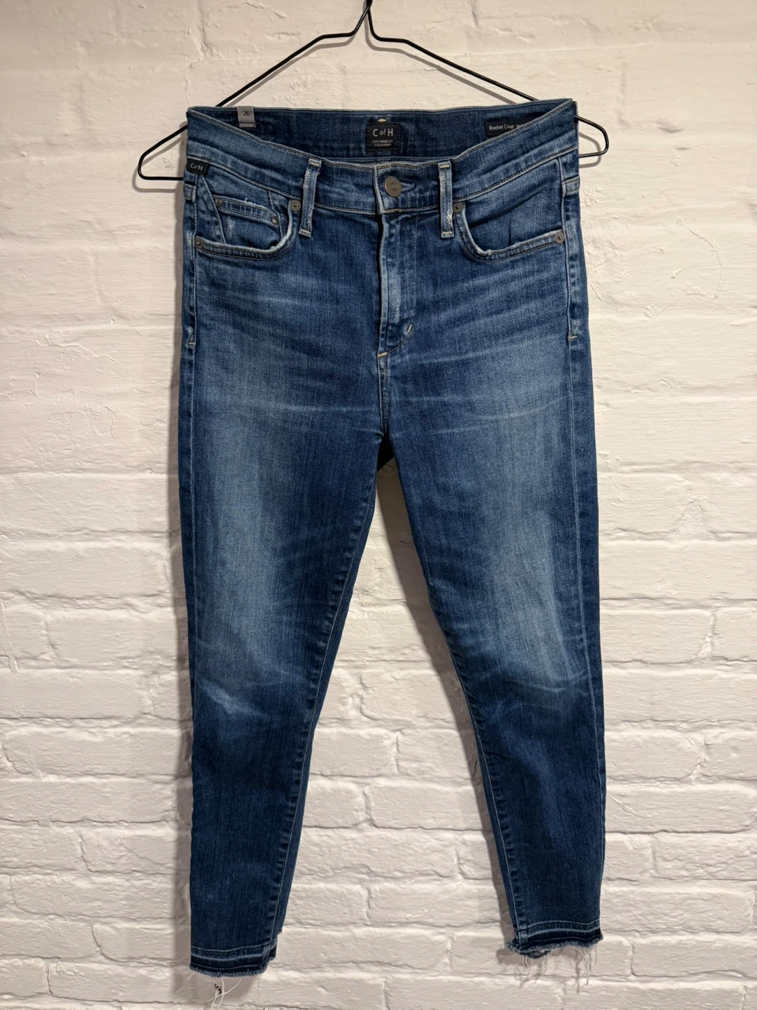 Selling a pair of Citizens of Humanity Rocket Crop high-rise skinny jeans in size 26! They're in great condition and ready for a new home. Perfect for a stylish and comfortable look. Feel free to reach out if you're interested!