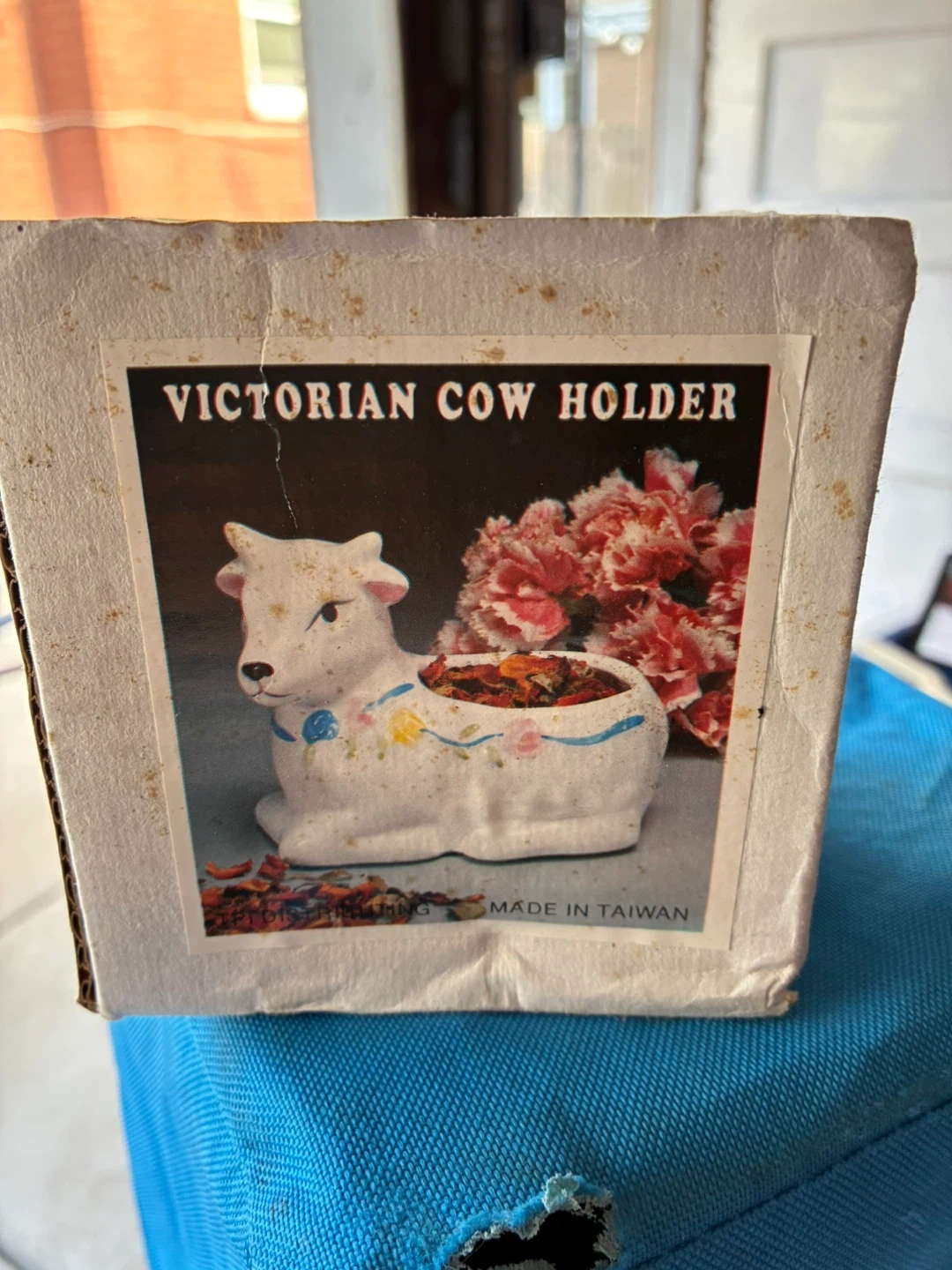 Victorian Cow Holder - New in Box Selling a brand new Victorian Cow Holder still in its original box! It's a cute ceramic piece with floral details, perfect for holding small items or as a decorative piece. The box is included, keeping it safe and sound until it finds its new home Pick up in Norridge Price $10