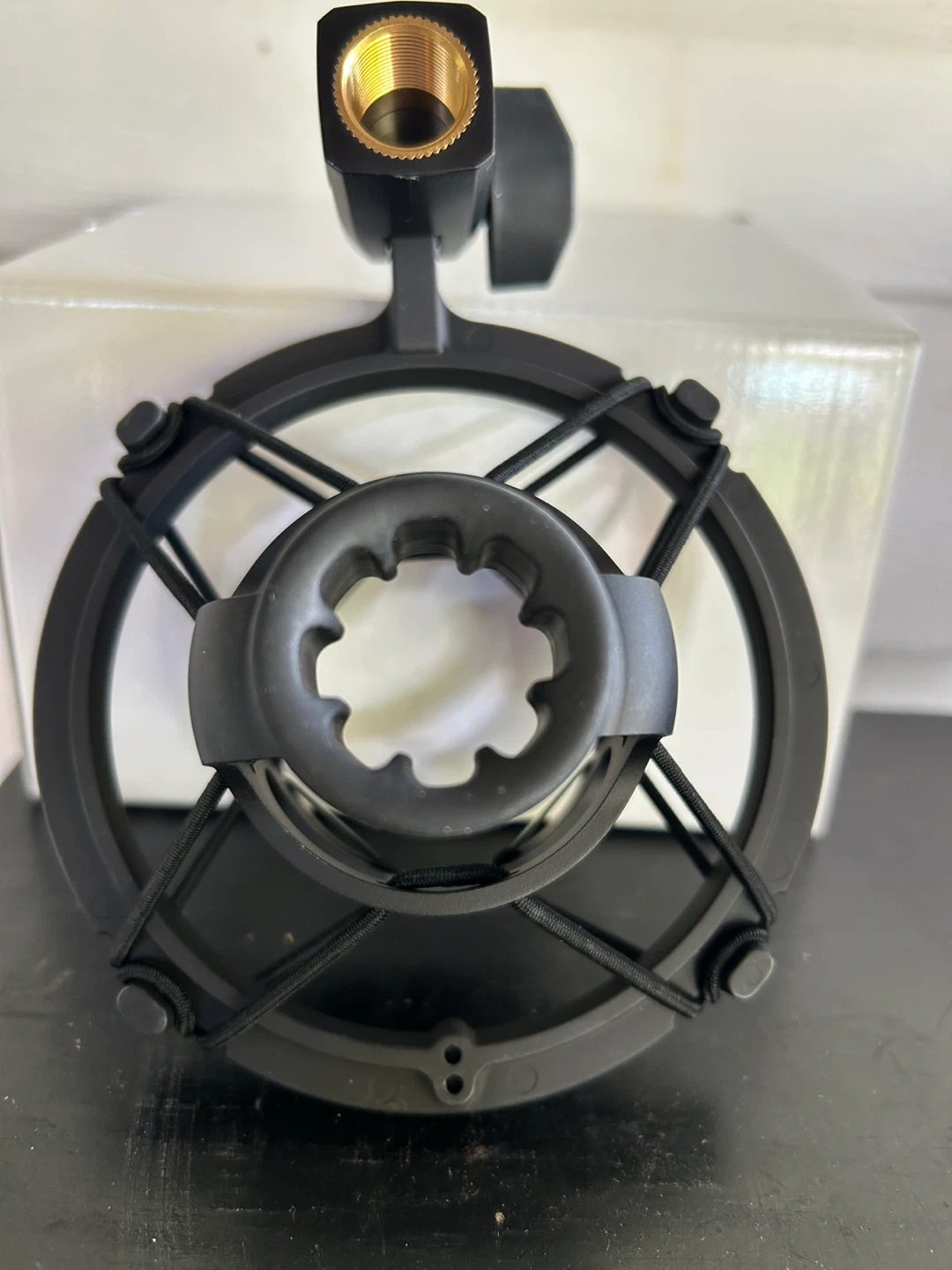 Selling a microphone shock mount in black! It's in brand new condition, still in the box and ready to use. Perfect for reducing unwanted vibrations and noise in your recordings The AT8449A is compatible with both 3/8"-16 (European) and 5/8"-27 (American) mic-stand threading and fits inside an R1 style A/T case.