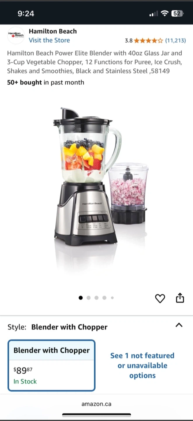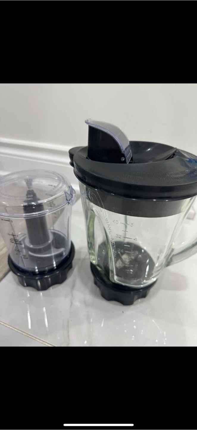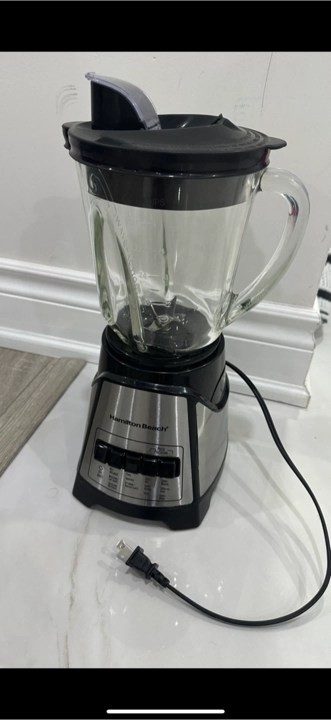 Selling a Hamilton Beach Power Elite Blender with a 40oz glass jar and a 3-cup vegetable chopper! It has 12 functions for pureeing, ice crushing, making shakes and smoothies. The blender is black and stainless steel. Originally bought for $89.87