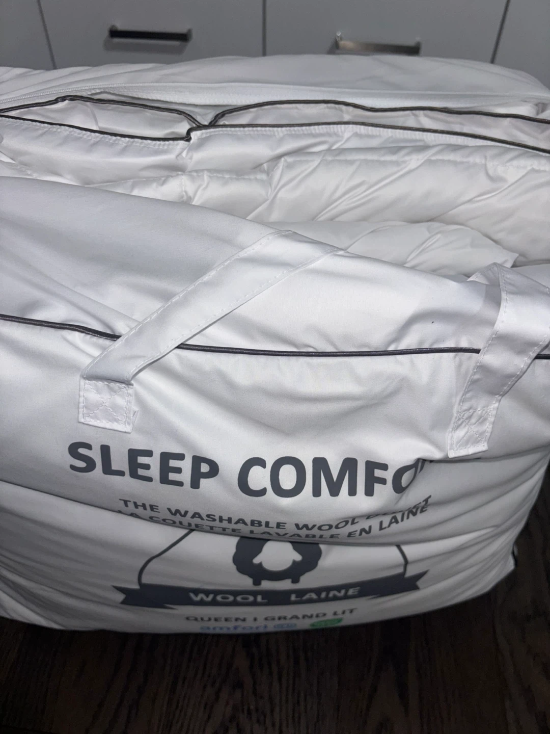 Selling a Queen size wool duvet! It's in excellent condition and super comfy. The duvet is made with washable wool and comes in its original packaging. Perfect for the coming winter.