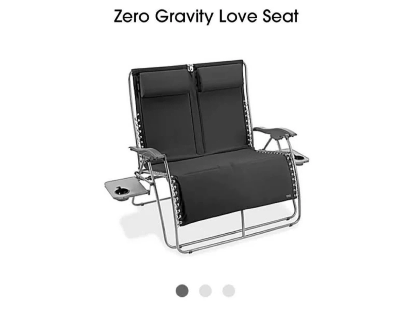 Selling a Zero Gravity Love Seat, perfect for relaxing outdoors or indoors! It features a comfortable design with a built-in side table for drinks and snacks. The seat is in great condition and ready for a new home