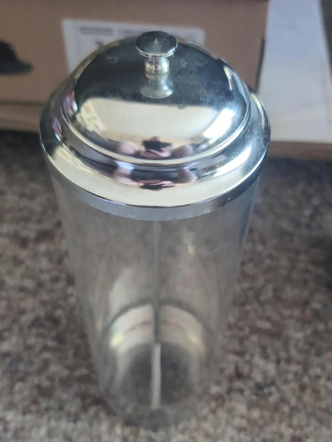 Selling a straw holder with a metal lid. It's in great shape and perfect for taking to the trailer