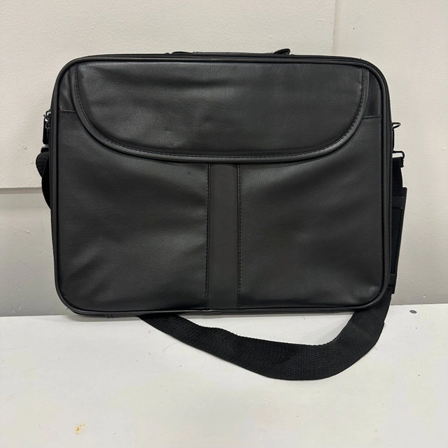 This is a used black leather laptop/briefcase bag, perfect for professionals on the go. It includes a shoulder strap for easy carrying. While it has been used, it remains in good condition and has plenty of life left. * Material: Leather * Colour: Black * Includes: Adjustable shoulder strap
