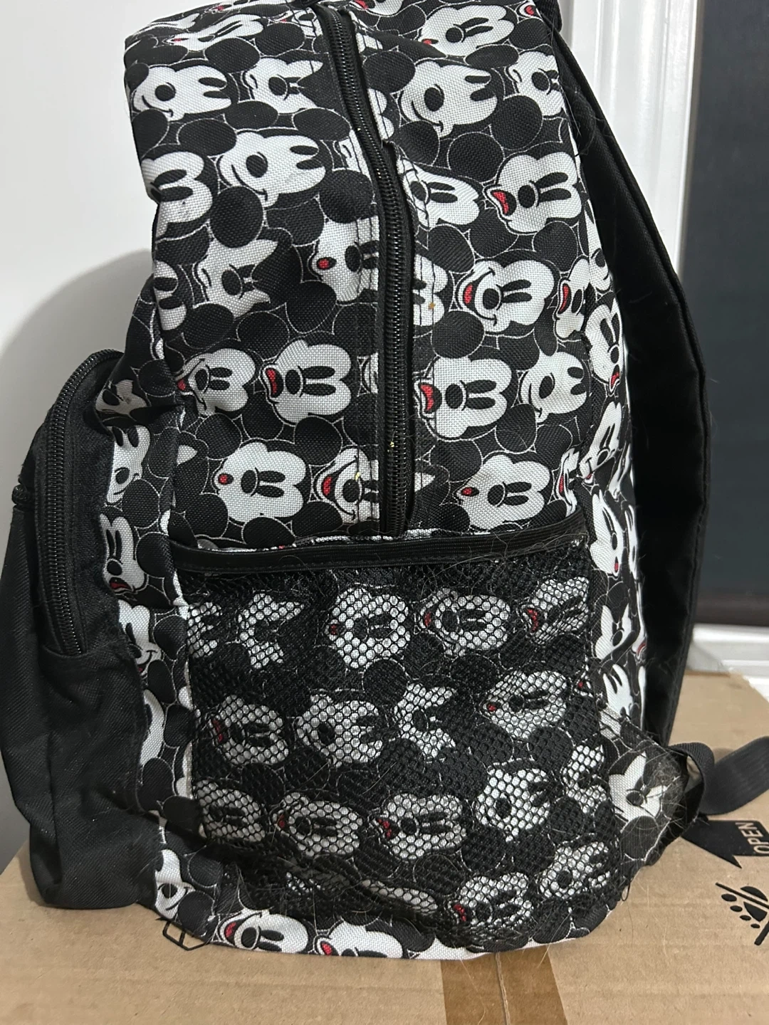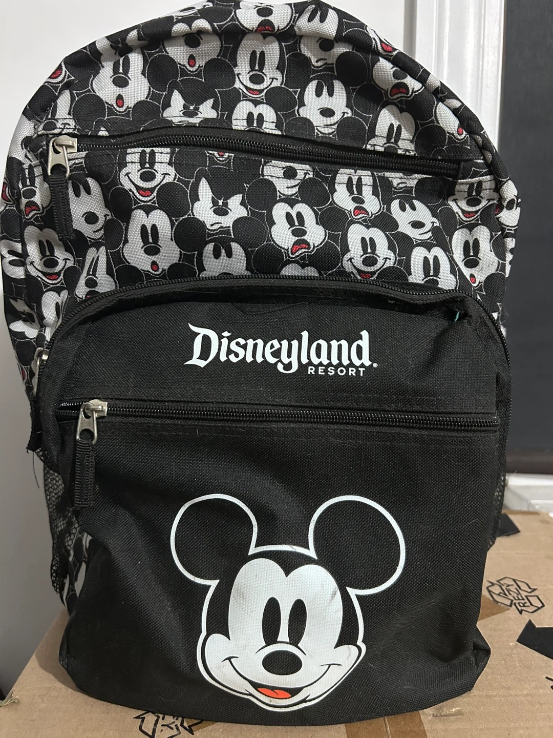 Original Disneyland backpack with three zipped front pockets and mesh pockets on both sides