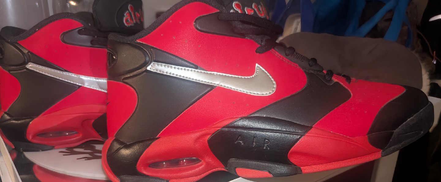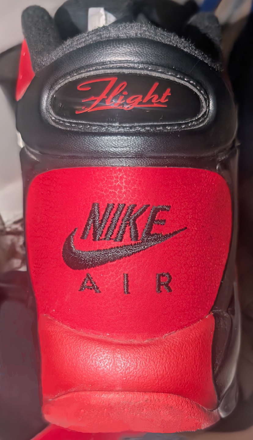 Selling a pair of Nike Air Flight sneakers in red and black! They have a classic look and are in good condition. Great for everyday wear or hitting the court. Check out the photos for details!