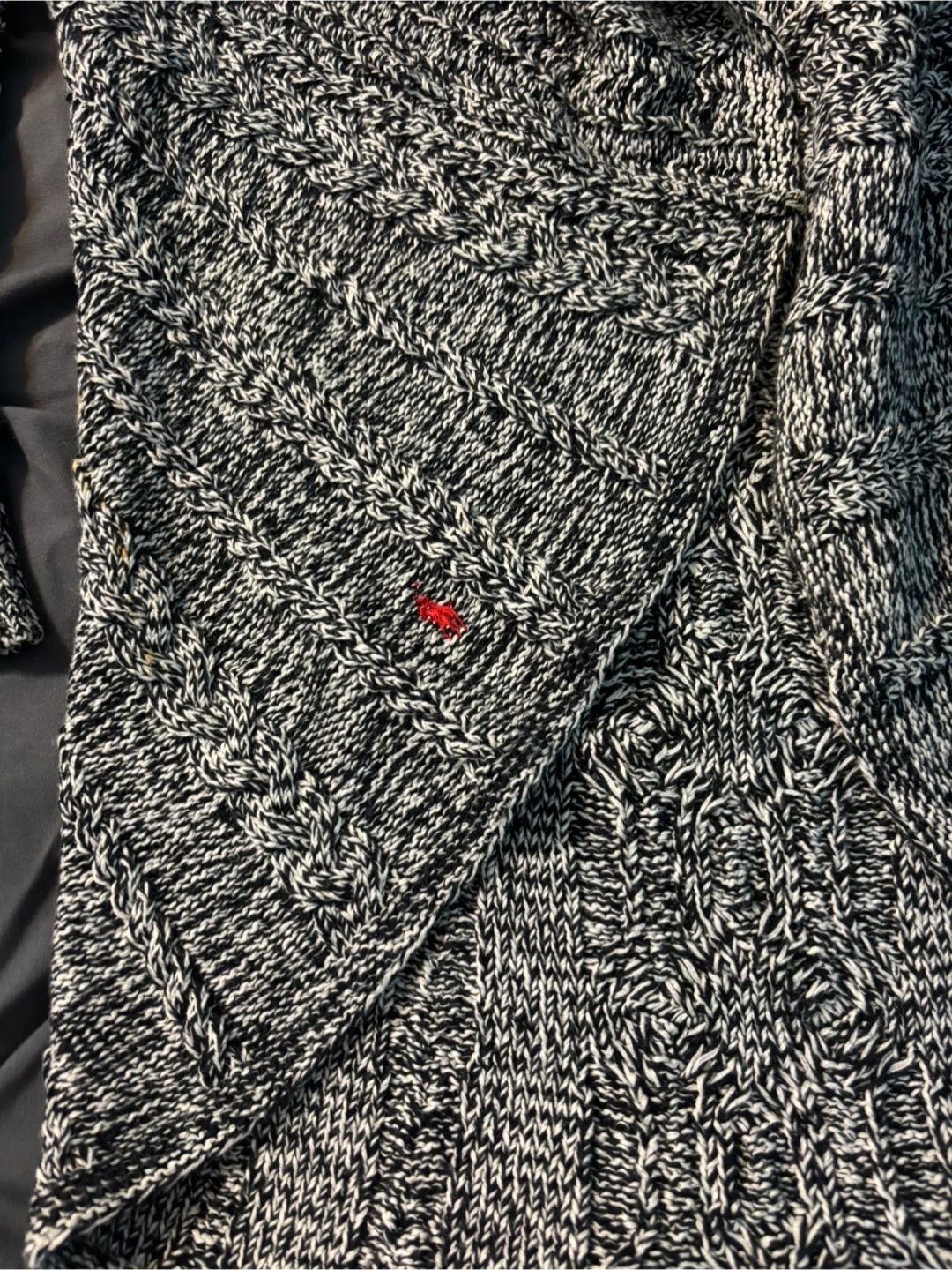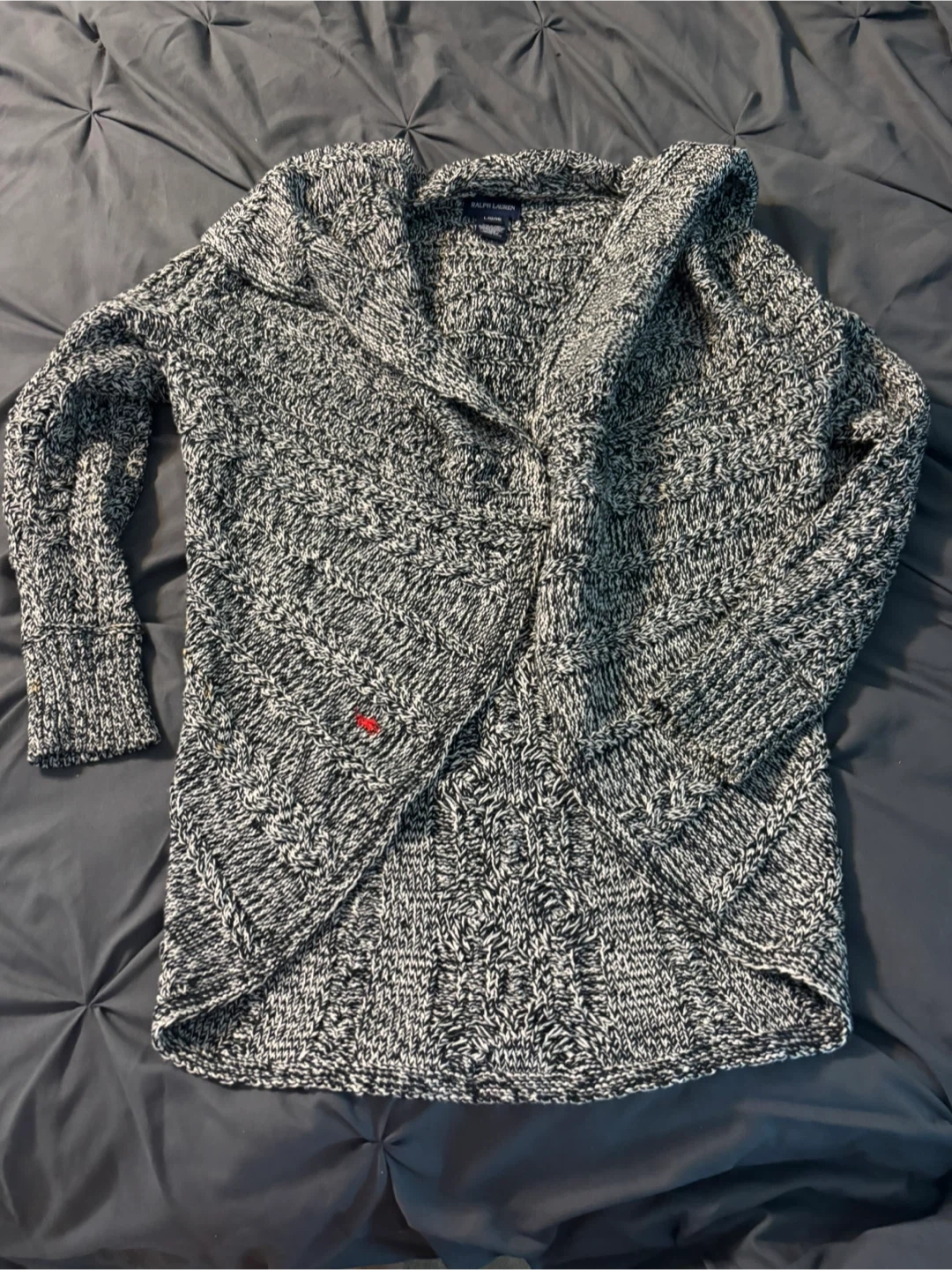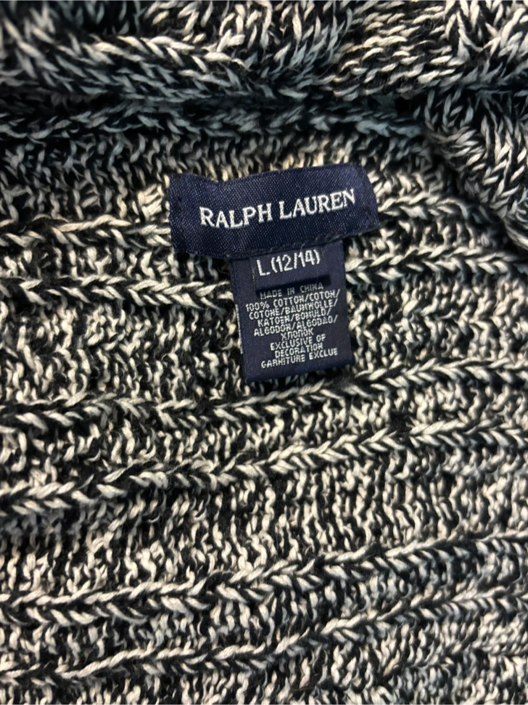 Cozy Ralph Lauren cable knit cardigan in a black and white knit! It's a size L (12/14) and in great condition. Perfect for layering up on chilly days!