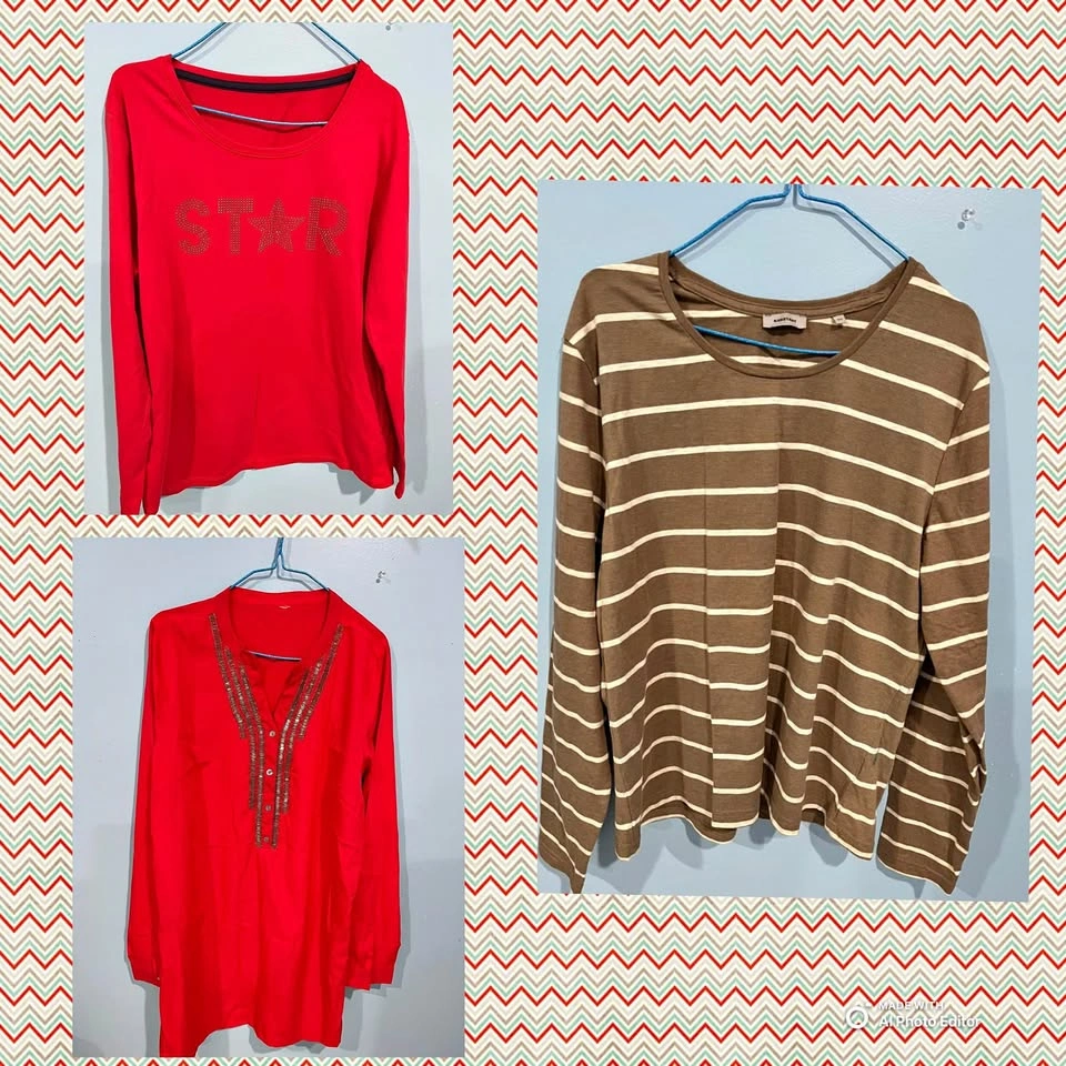 Shirts for sale! The pictures are not clear and the red appear too bright. They are not at all bright in person. Give me offer for any that you like Sizes M-L Red STAR shirt Red Rhinestones Shirt Brown and Cream Lines shirt I want to get rid of them ASAP, check out my other listings or dm me for pictures of whatever I have. Thank you Feel free to message me for more info and details
