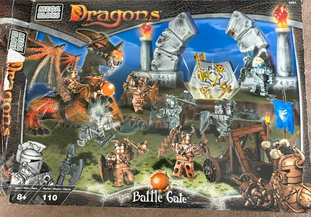 Large mixed lot of Mega Bloks sets. Sets come from Vikings, Knights of the Round Table, Dragons, etc. All parts may not be there. Comes with minifigs as well. Compatible with Lego too.