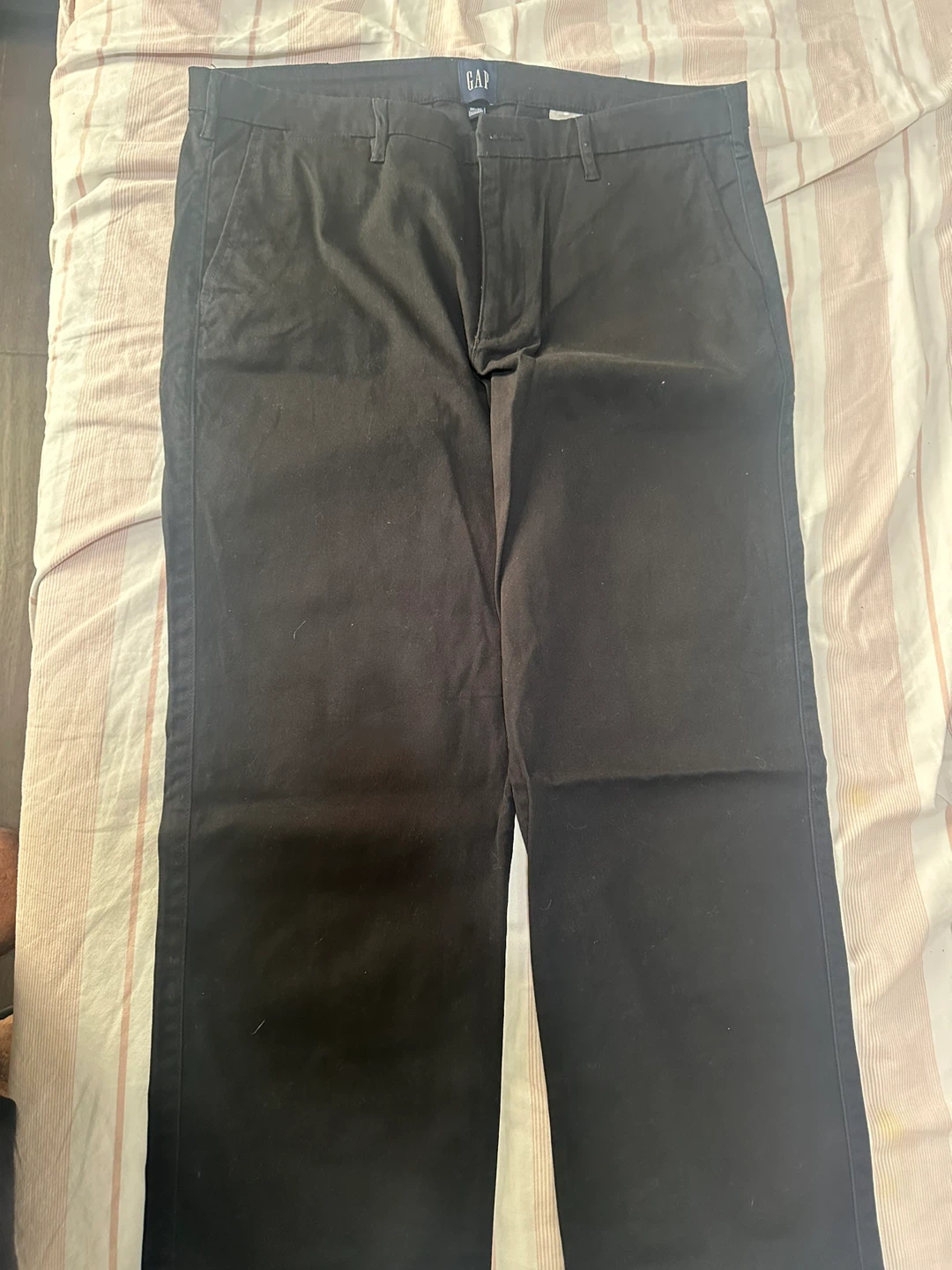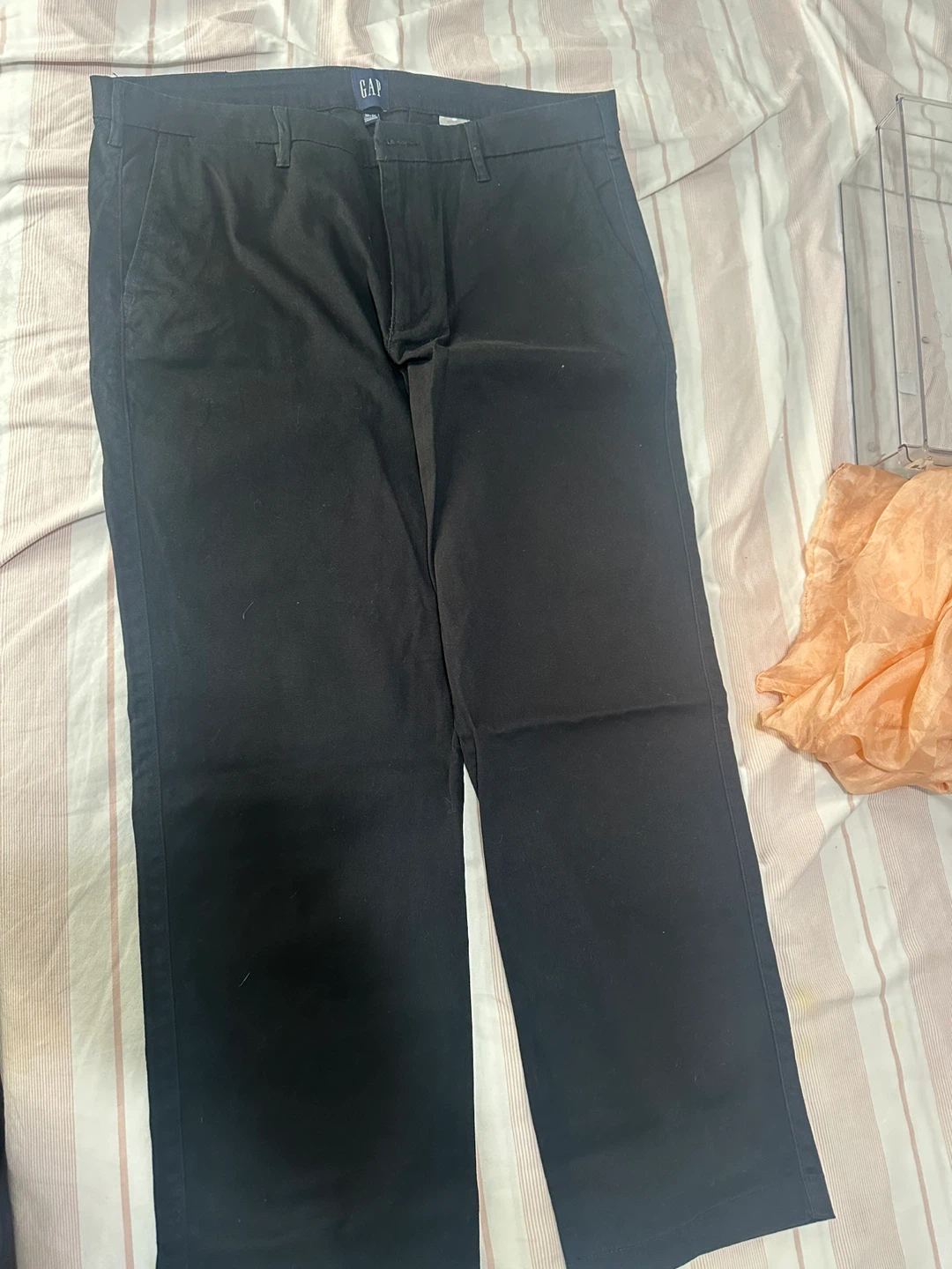 Selling a pair of GAP black chinos. They're in great condition and ready for a new home! Perfect for casual wear or dressing up.