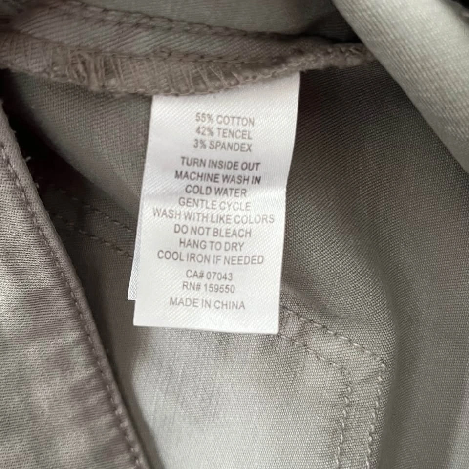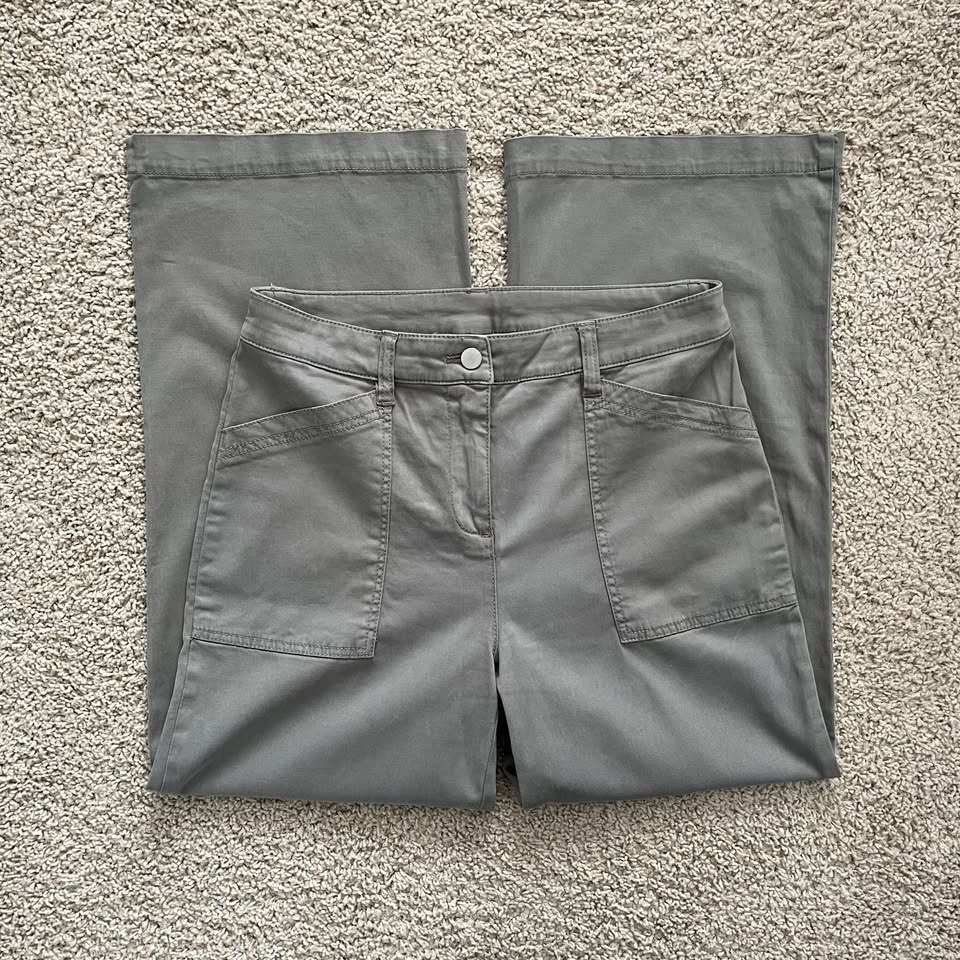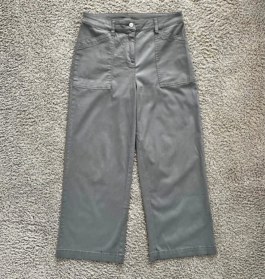 - Colour is a muted, washed olive green - Cropped, ankle pant