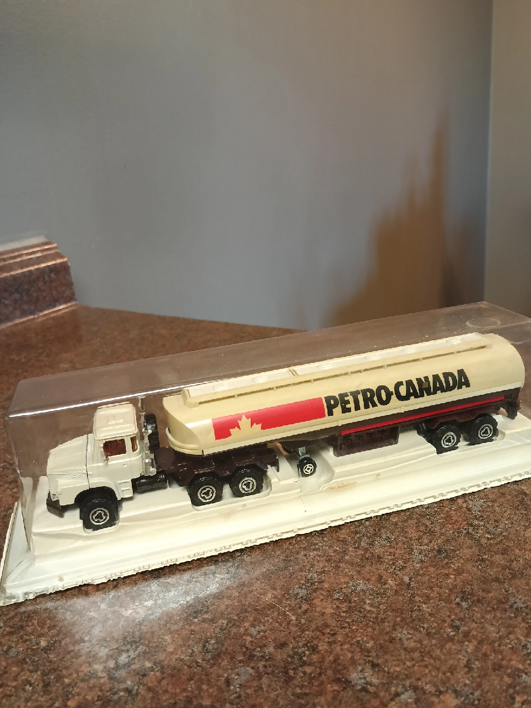 Selling a vintage Petro-Canada tanker truck, still brand new in its original packaging! This is a great collectible for anyone interested in Canadian memorabilia or vintage toys