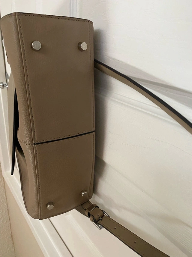Jeanne Lottie crossbody bag taupe colour 9” H x 12” W x 4” base
