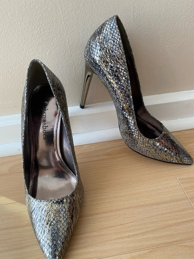Buy & SellGold and silver Town Shoes size 36Gold and silver Town Shoes size 36$30Town shoes—genuine leather Size 36 Silver and gold iridescent high heels 4” heels Price firm—cash only Pick up Wellesley or College subwayConditionLike newSize36BrandTown ShoesWHERE TO MEETWellesley or College subwayView MapSELLERverifiedHelenWellesley Station1225 reviews0 chats·0 favorites·13 viewsSEND CHAT TO SELLERHi Helen! I’m interested in your listing.Hi Helen! I’m interested in your listing.Get the Karrot app to chatSign In to chat