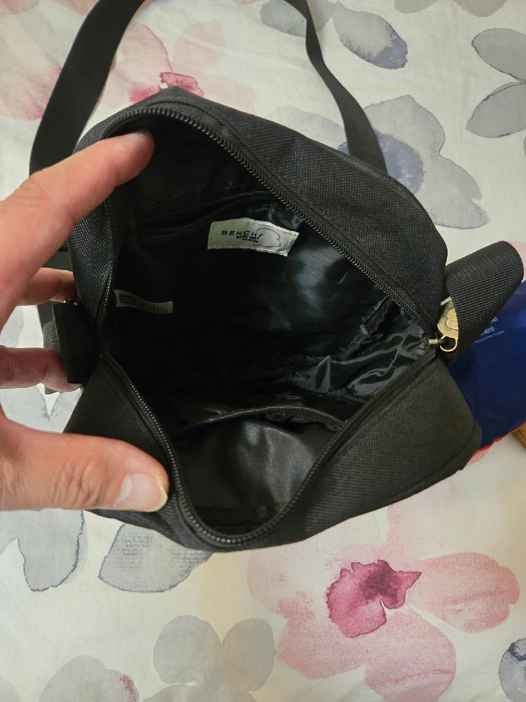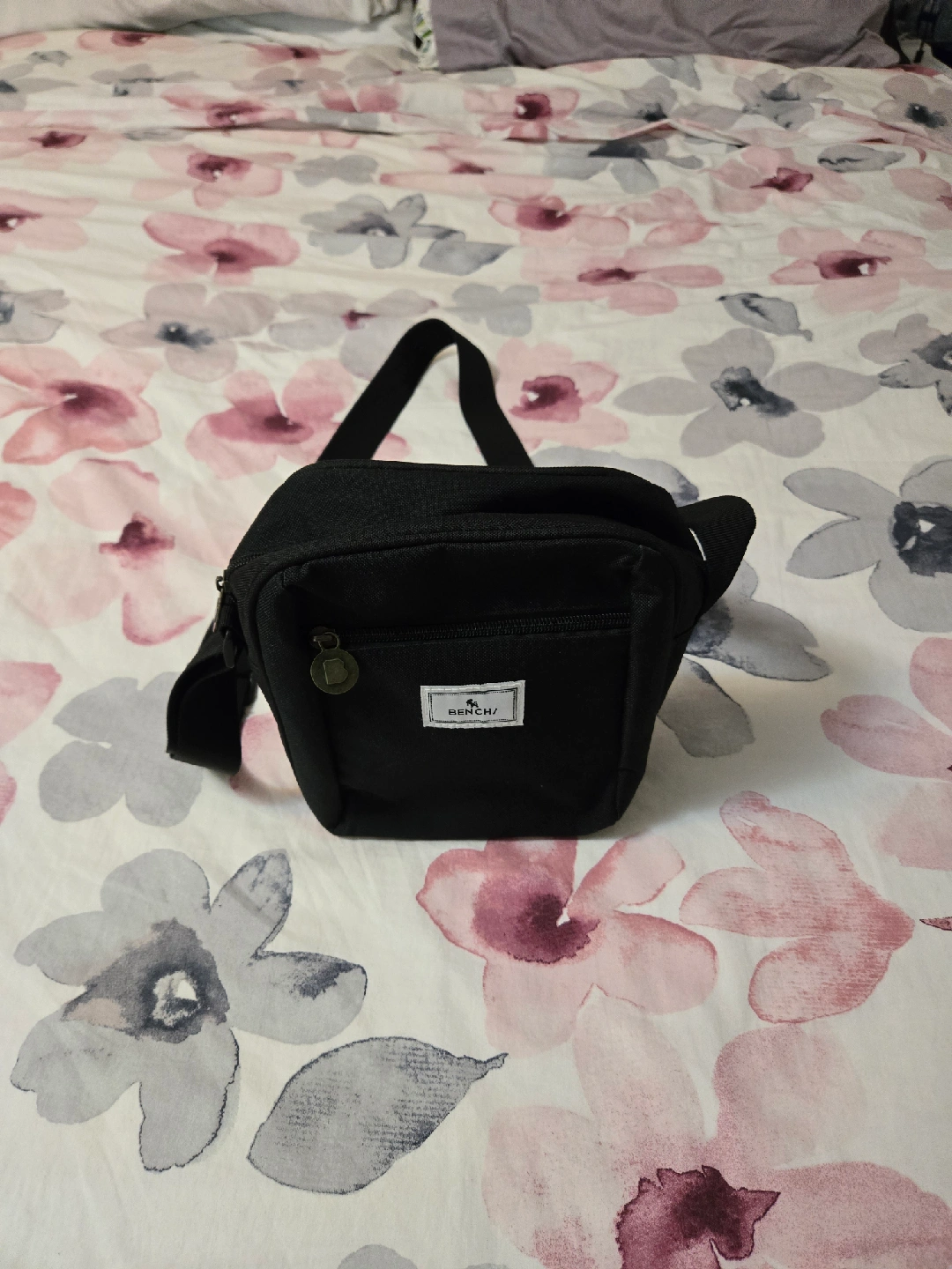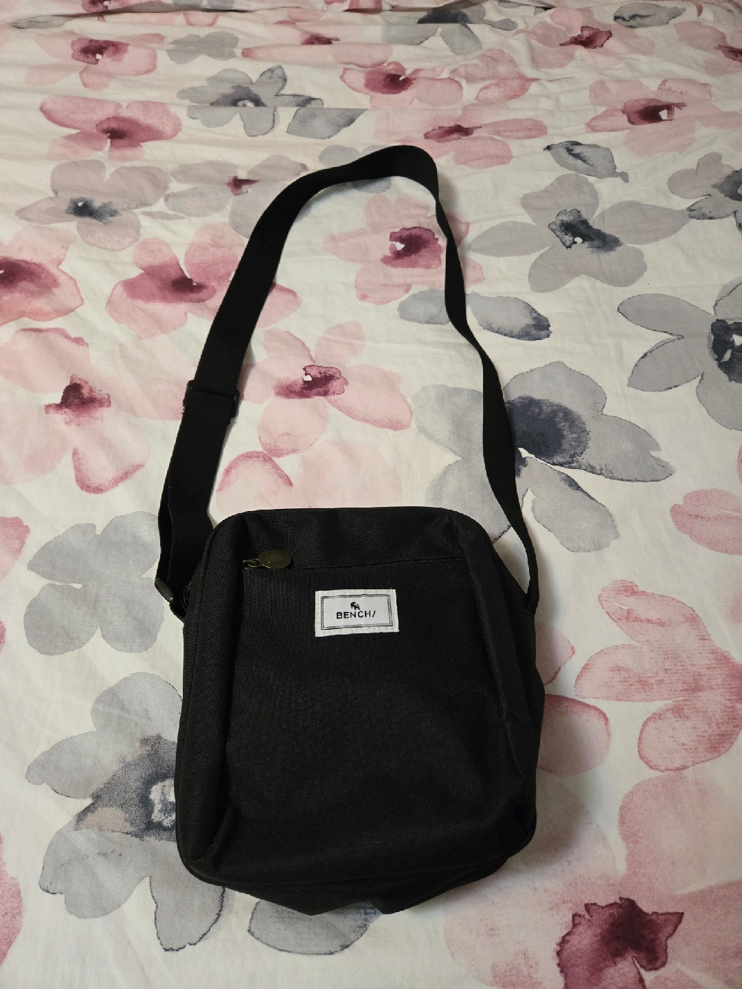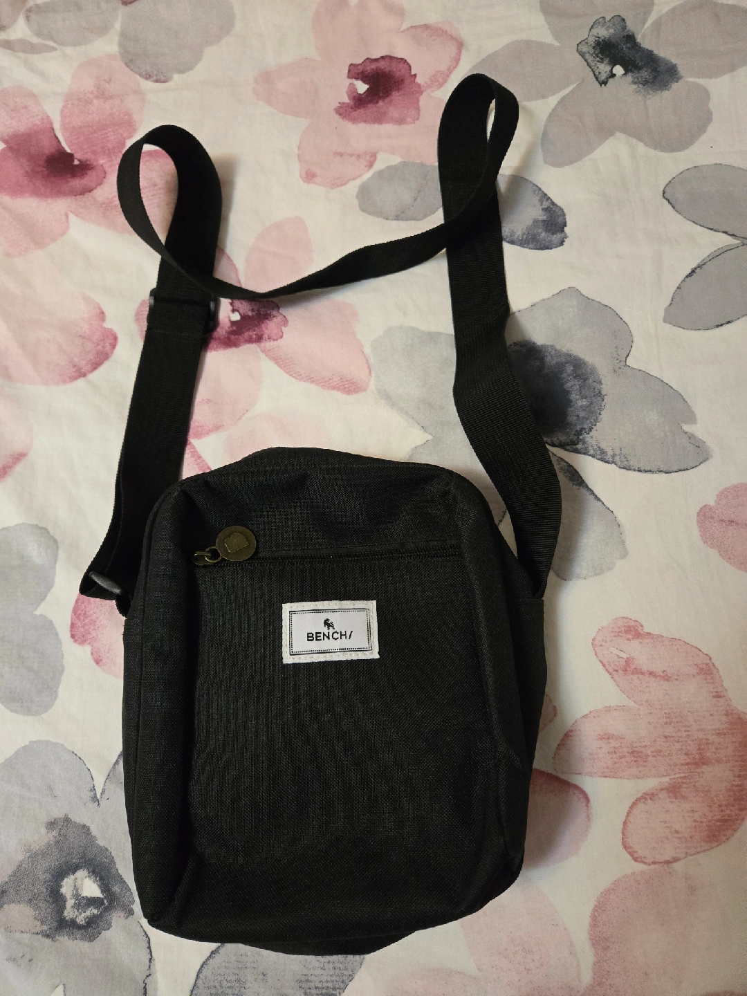 Selling a Bench crossbody bag in black. It's in great condition and perfect for everyday use! The bag features a main compartment and a front zipper pocket. The strap is adjustable for a comfortable fit.