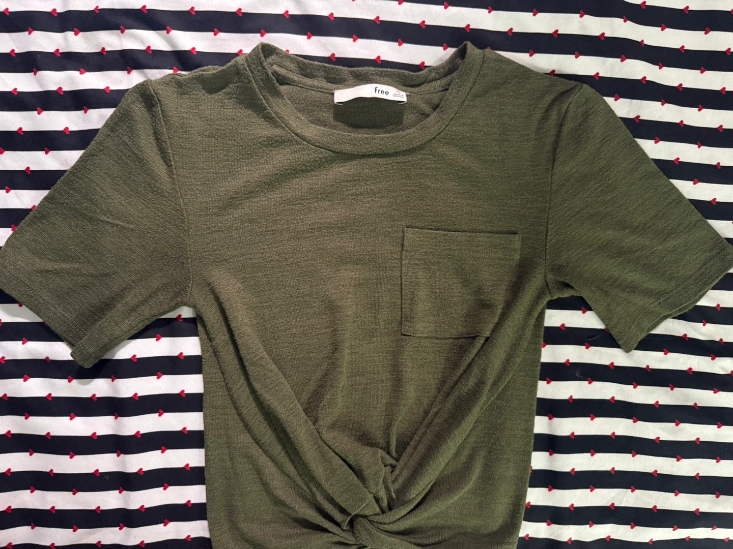 Selling a cute olive green t-shirt from Wilfred features a stylish twist-front detail and a small pocket on the chest. It's in great condition and perfect for a casual, everyday look