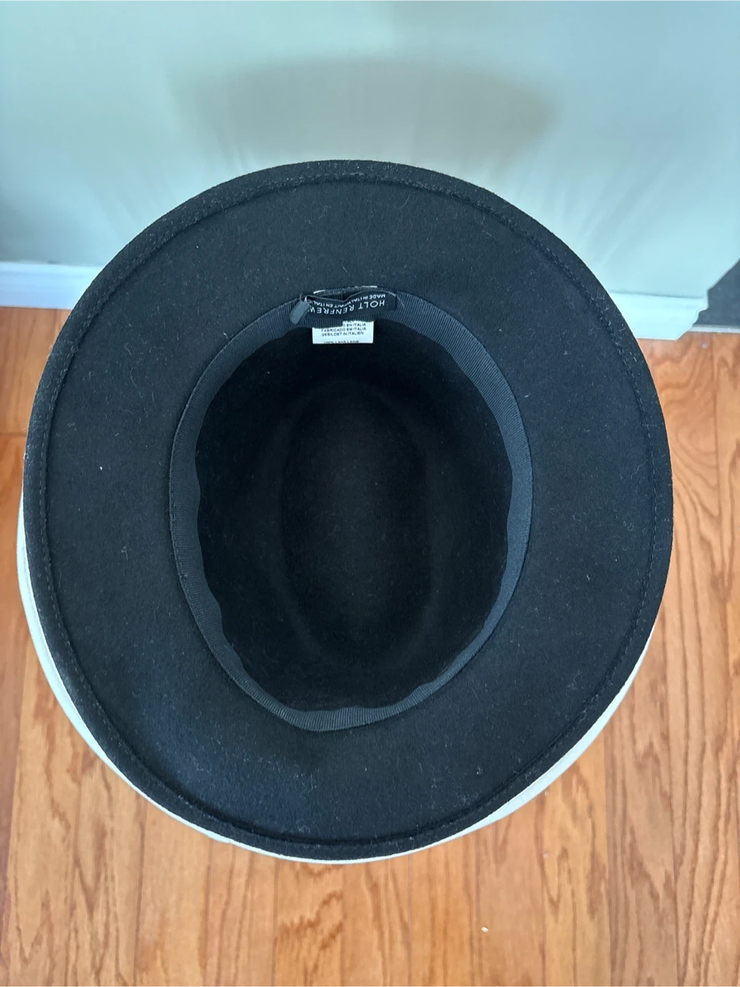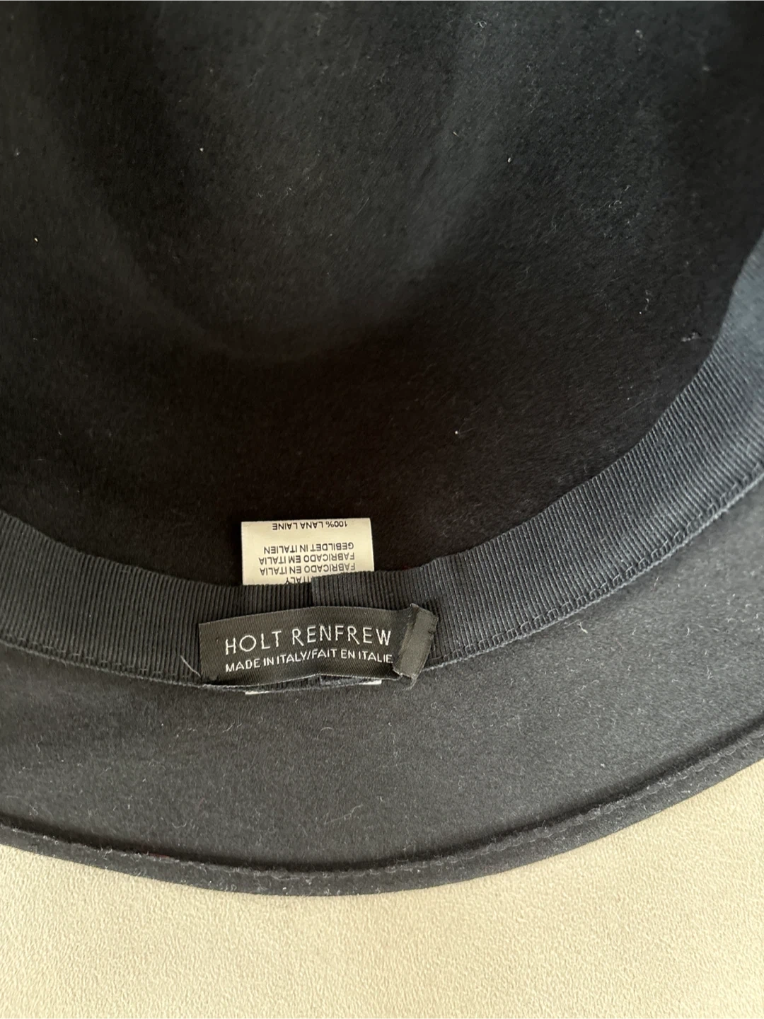 Selling a Holt Renfrew fedora hat in black. It's made of 100% wool and was made in Italy. It's in great condition!