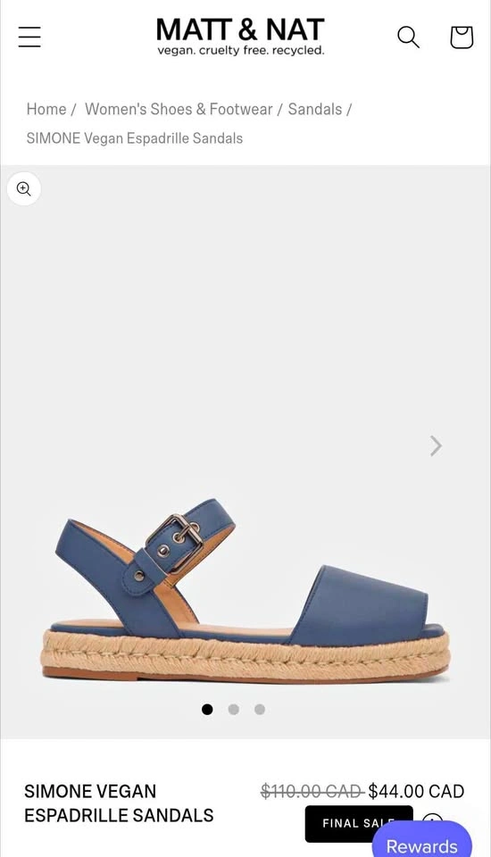 Matt and Nat Simone espadrille sandals in Sky - size 41