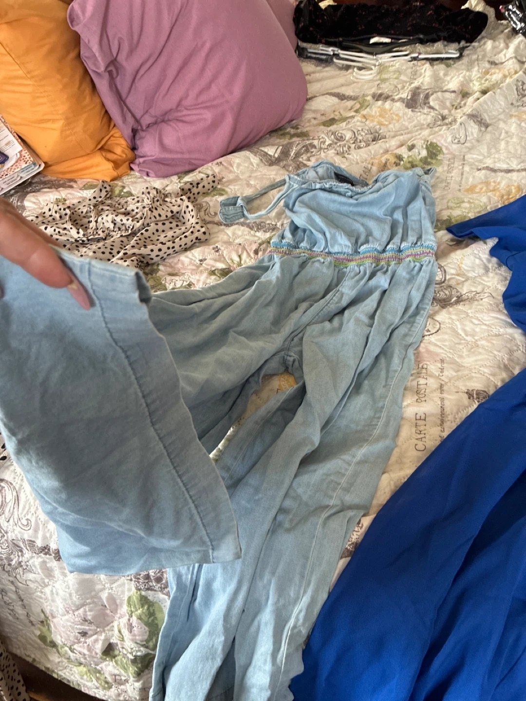 Tommy Hilfiger girls' jumpsuit in a light blue denim color. It's a size Large (12/14). Great for a casual, stylish look!