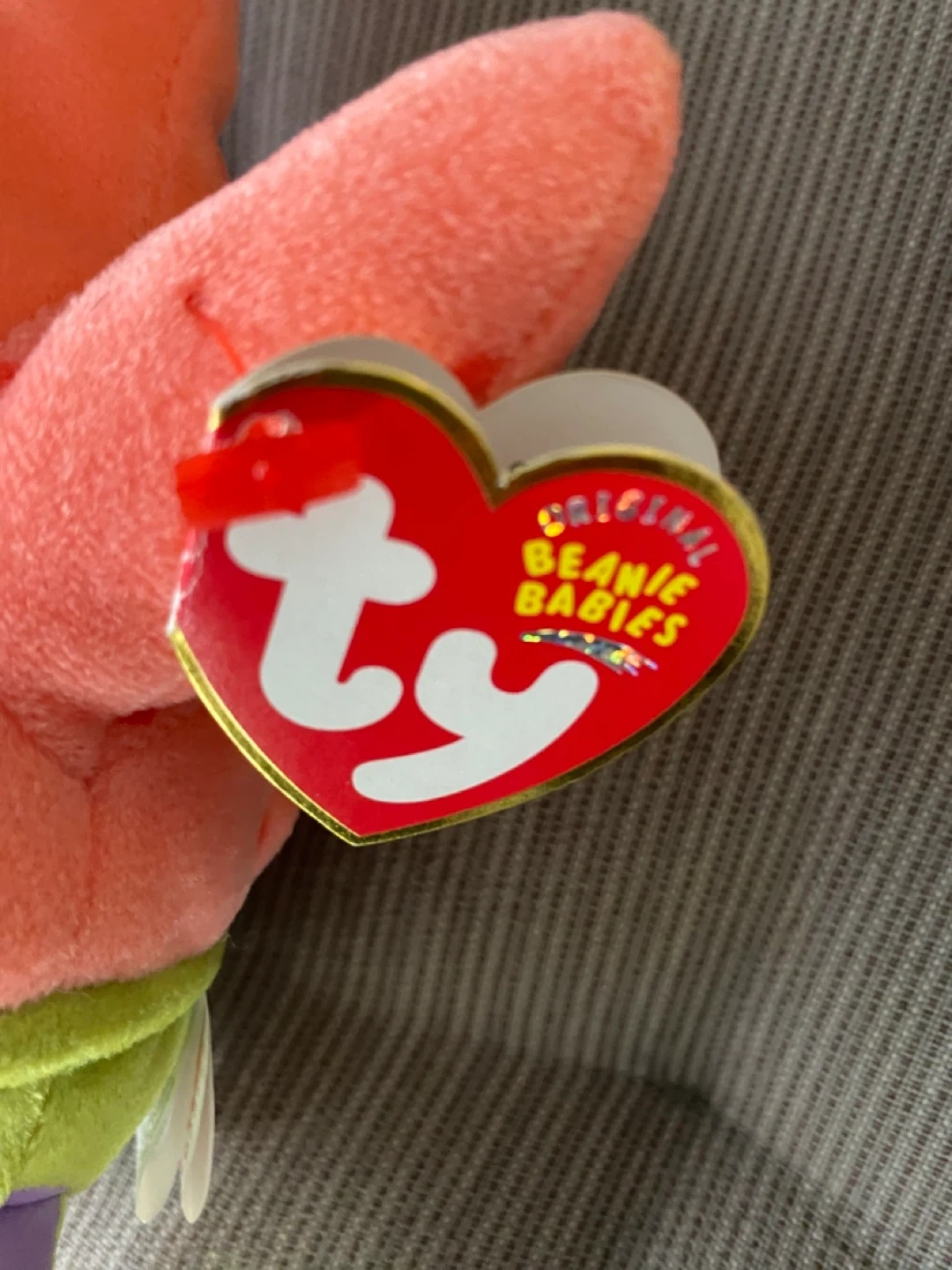 Pink Patrick Star Ty beanie baby measures 7 inches and has tags.