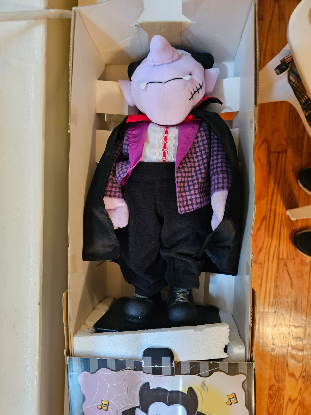 90The Vintage TL Toys Animated Musical Halloween Dancing Vampire is a unique and entertaining collectible item perfect for adding a spooky touch to your Halloween decorations. This black-colored dancing vampire toy features an animated movement and plays musical tunes, making it a fun and interactive addition to your home during the holiday season. Made with durable materials, this vintage toy is sure to bring joy and nostalgia to collectors and Halloween enthusiasts alike. In excellent condition! In original box. May never have been used. See my other listings by visiting my Ebay store, theevictorianrose. More interesting listings also at: mvdandfriends1313.