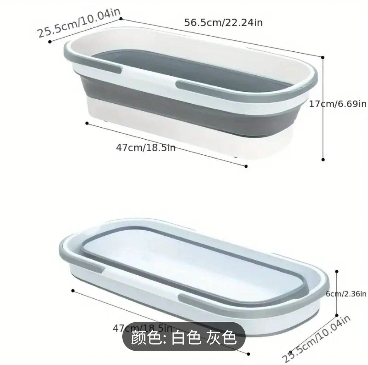 I'm selling a collapsible basin tub! It's grey and white and in great condition. It's perfect for small spaces and easy to store.