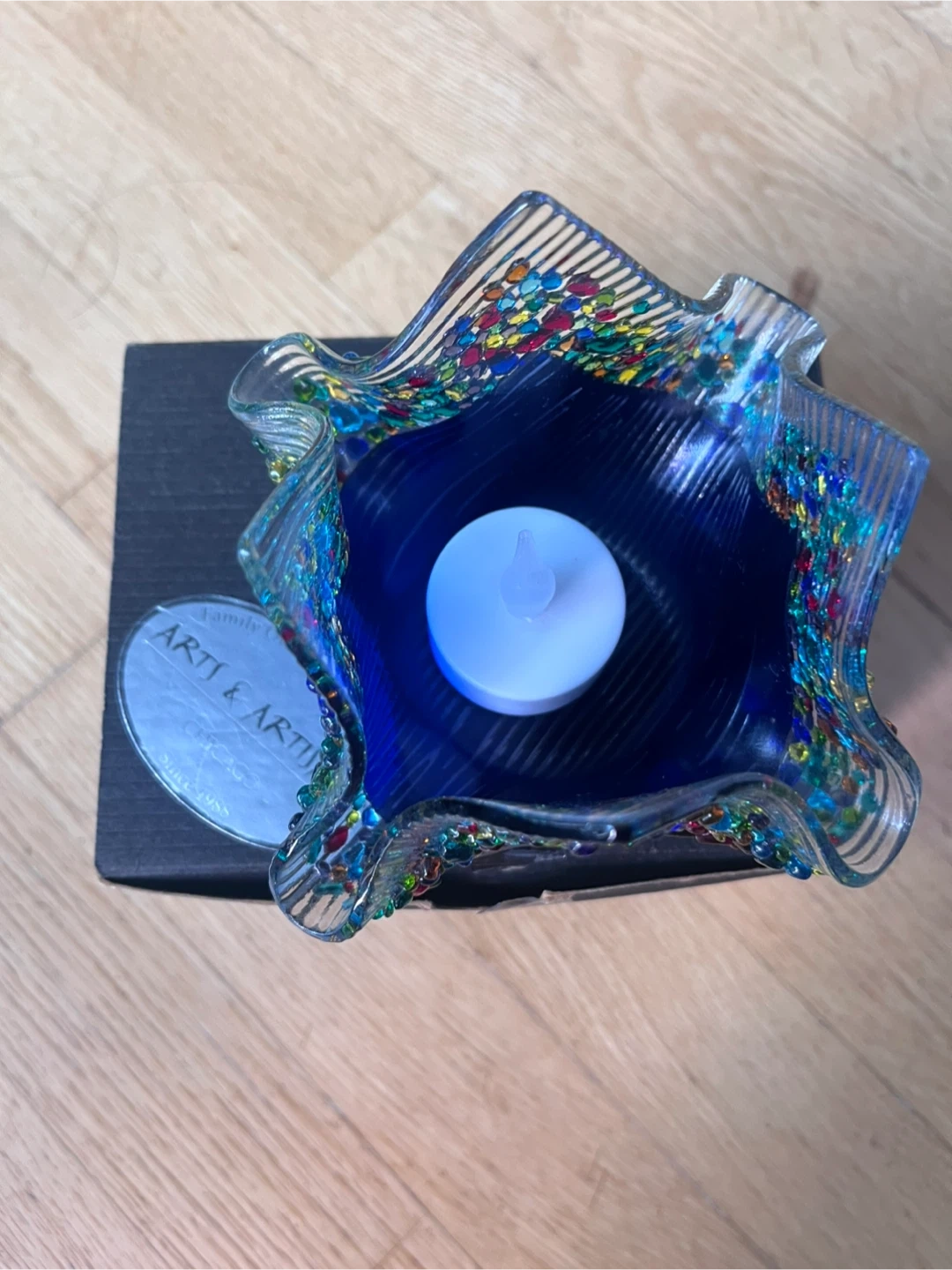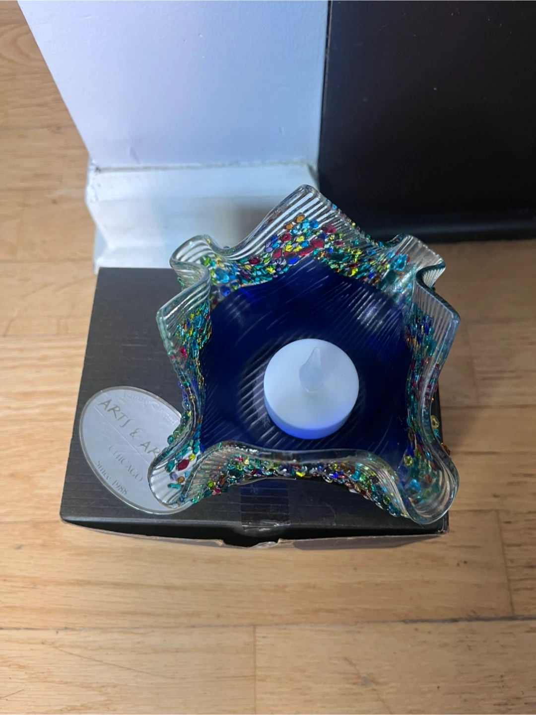 Selling a candle holder with a battery-powered candle from Arts & Artisan Chicago. It's in practically new condition and comes with the original box.