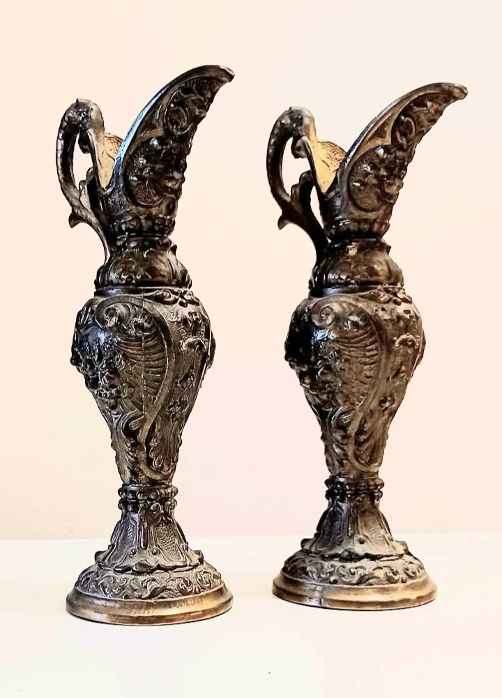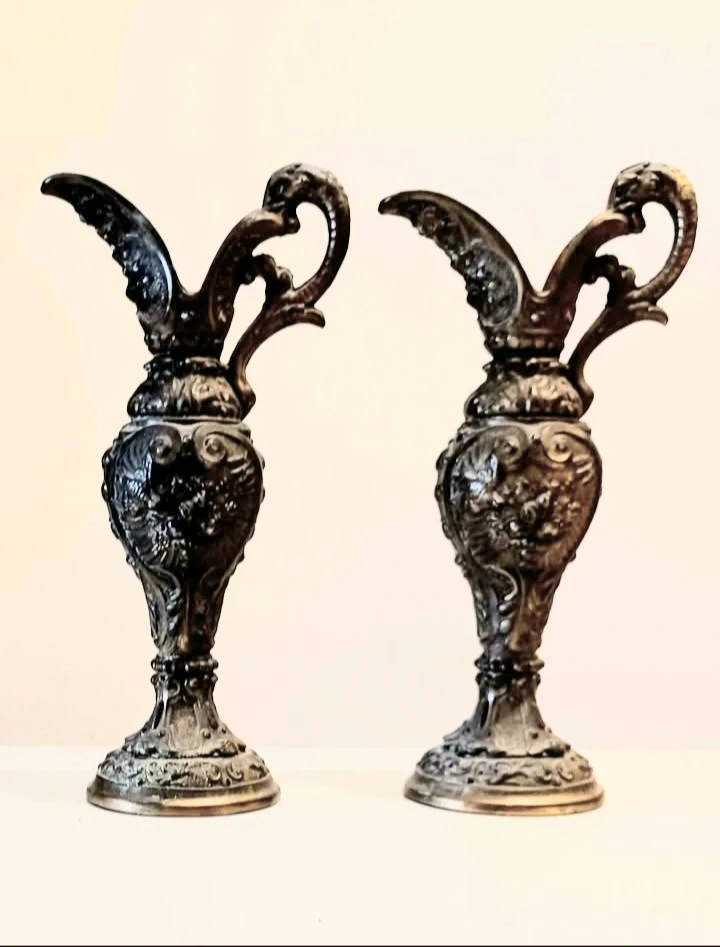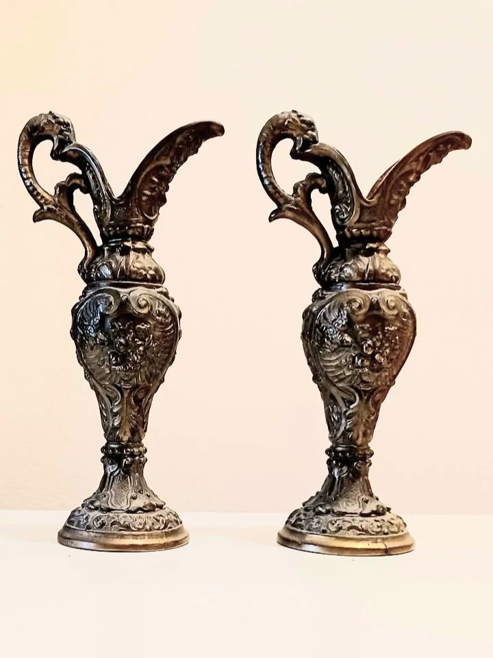 Antique, 1800's - Very Rare Bronze, Pair of Stunning, Centerpiece Amphorae Sculptures,