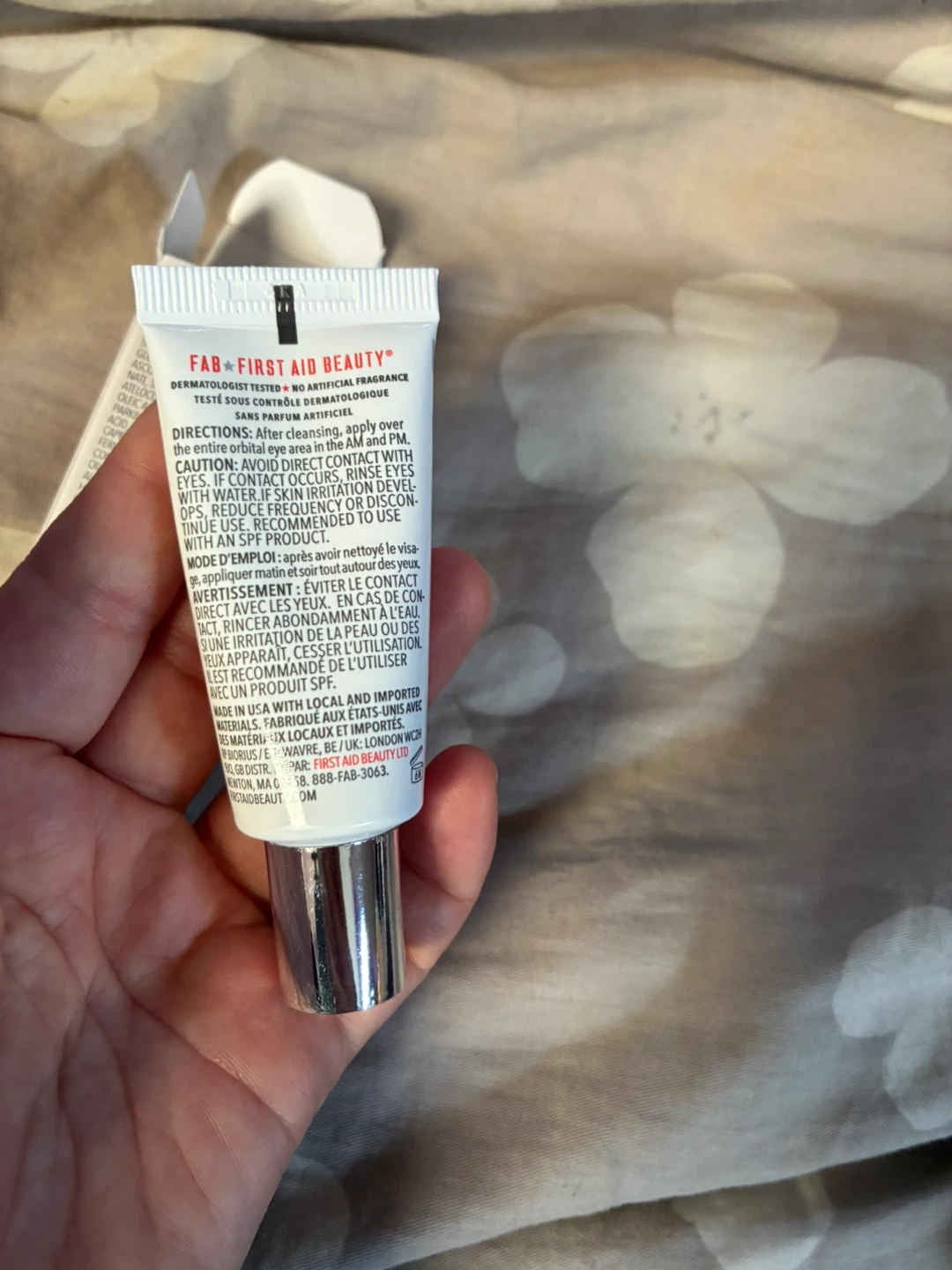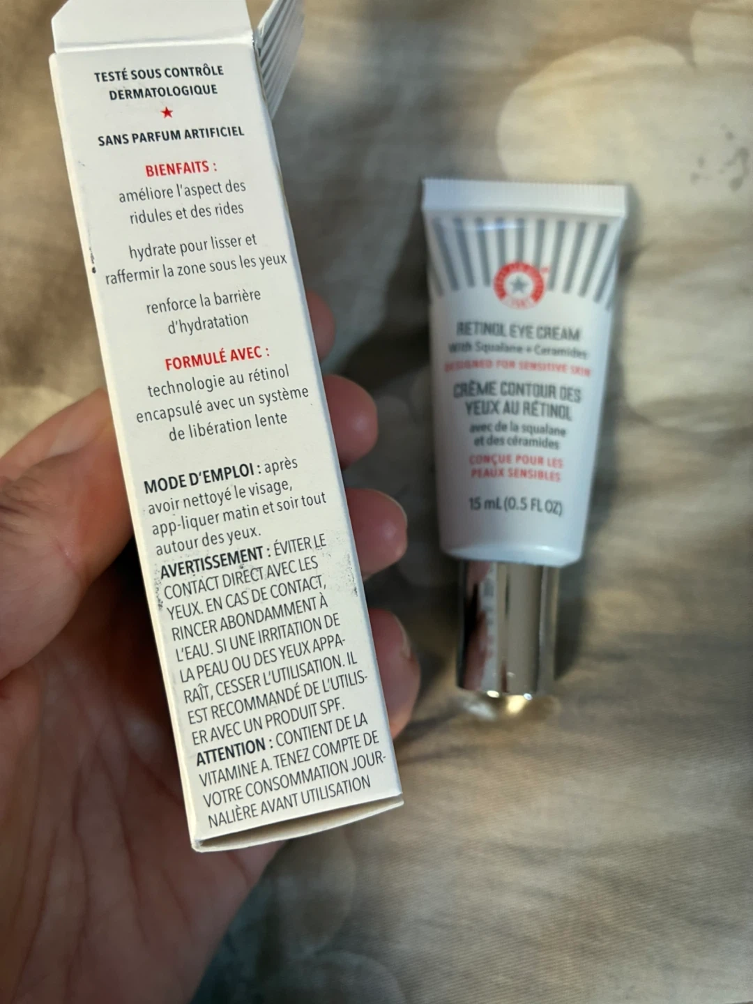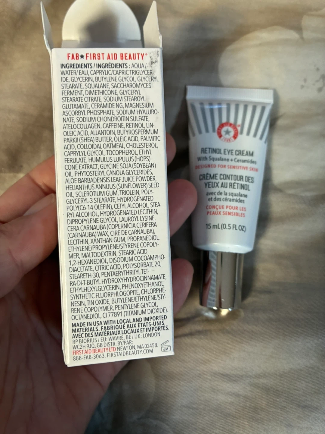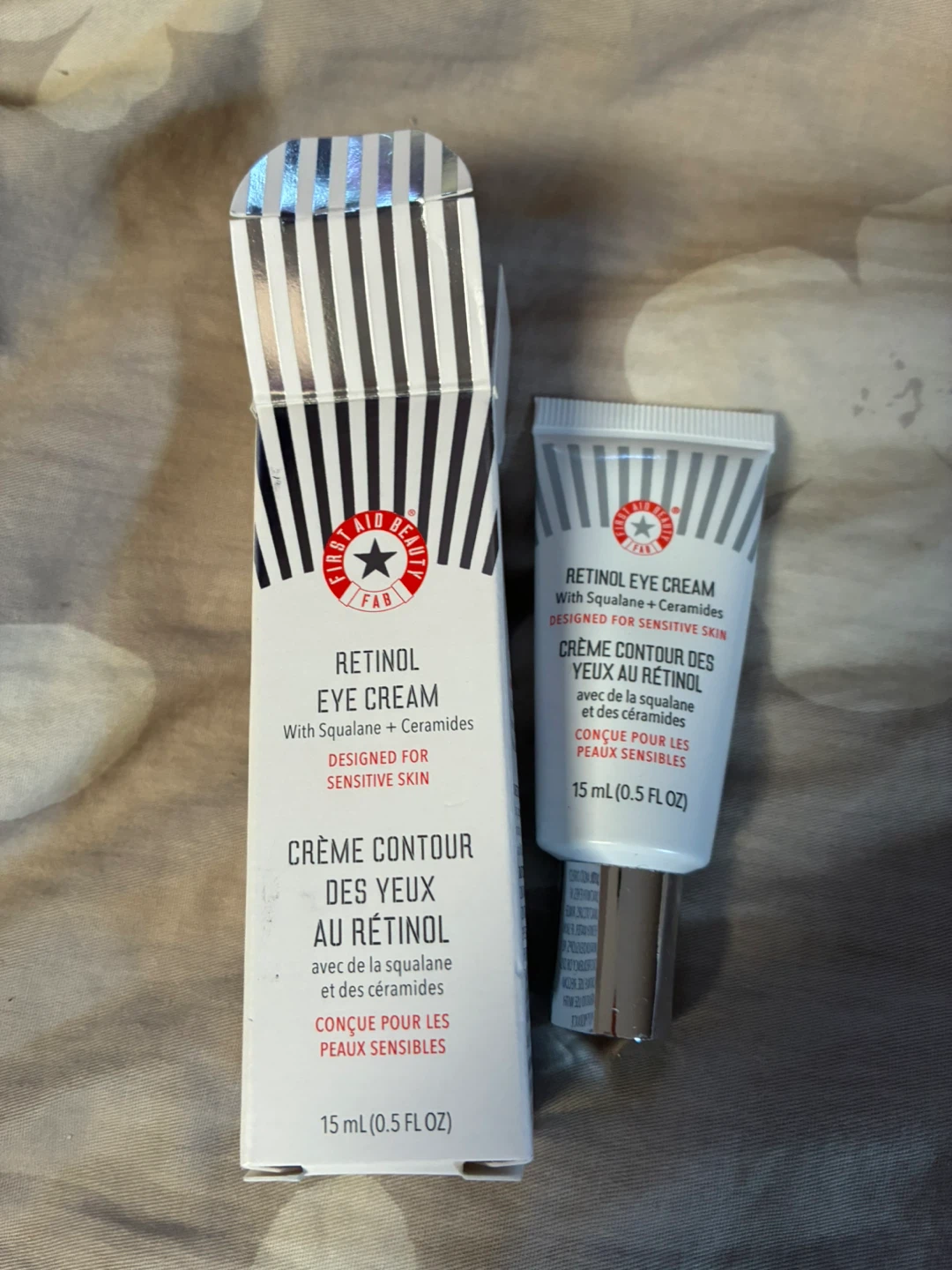 I'm selling a brand new First Aid Beauty Retinol Eye Cream! This eye cream is designed for sensitive skin and contains squalane and ceramides. It comes in a 15 ml (0.5 FL OZ) tube and includes the box. Perfect for improving the appearance of fine lines and wrinkles while hydrating and firming the under-eye area