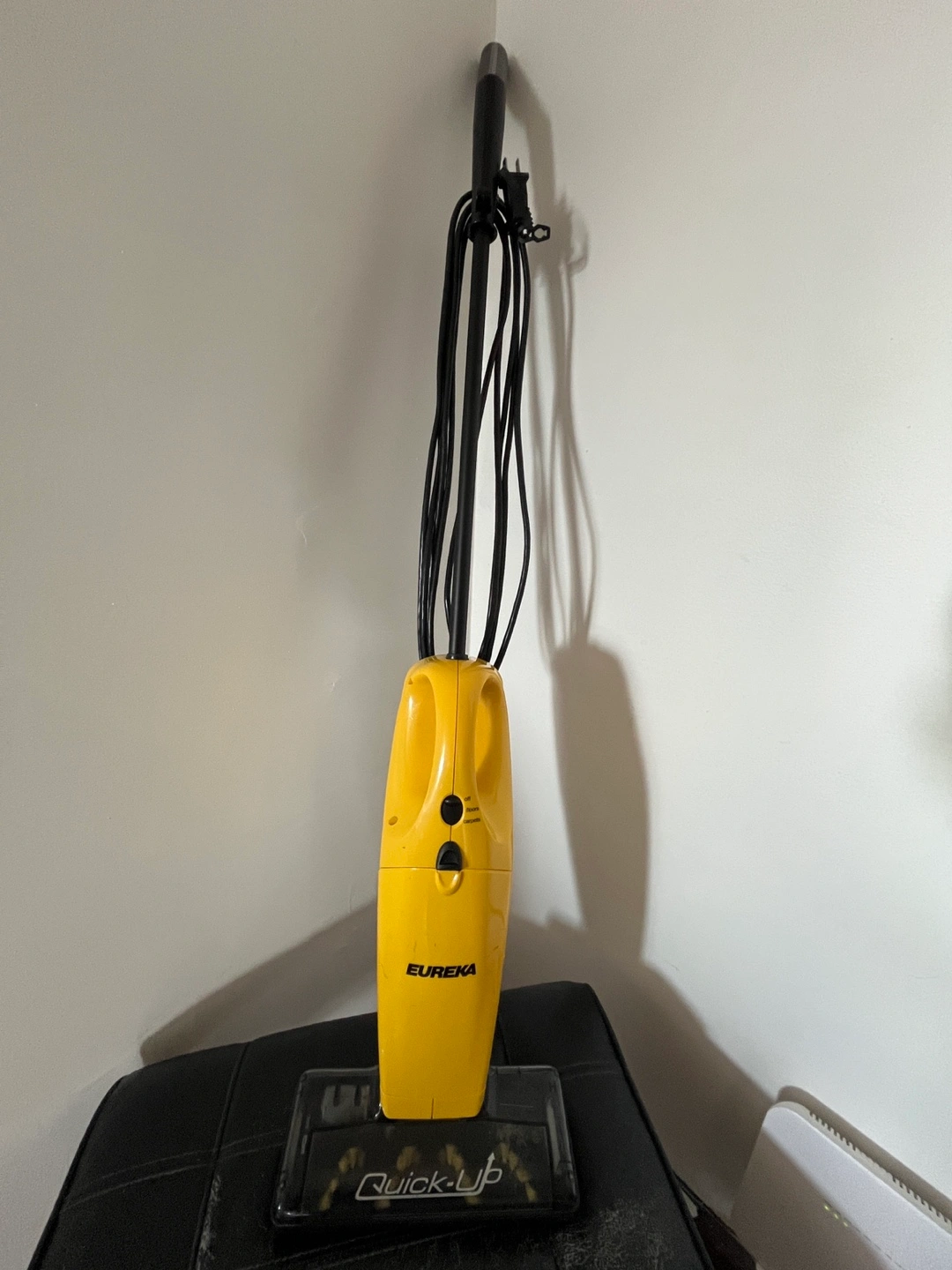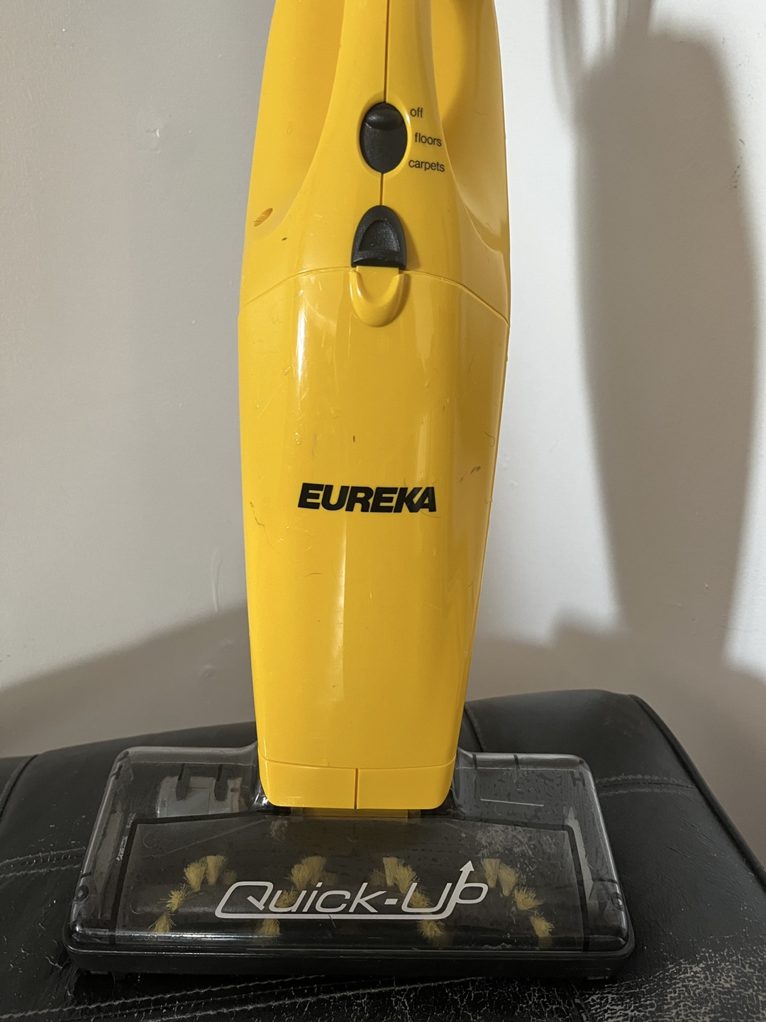 Selling a Eureka Quick-Up stick vacuum! It's corded, so you don't have to worry about batteries. Perfect for quick clean-ups on floors or carpets. It doesn’t need a bag.