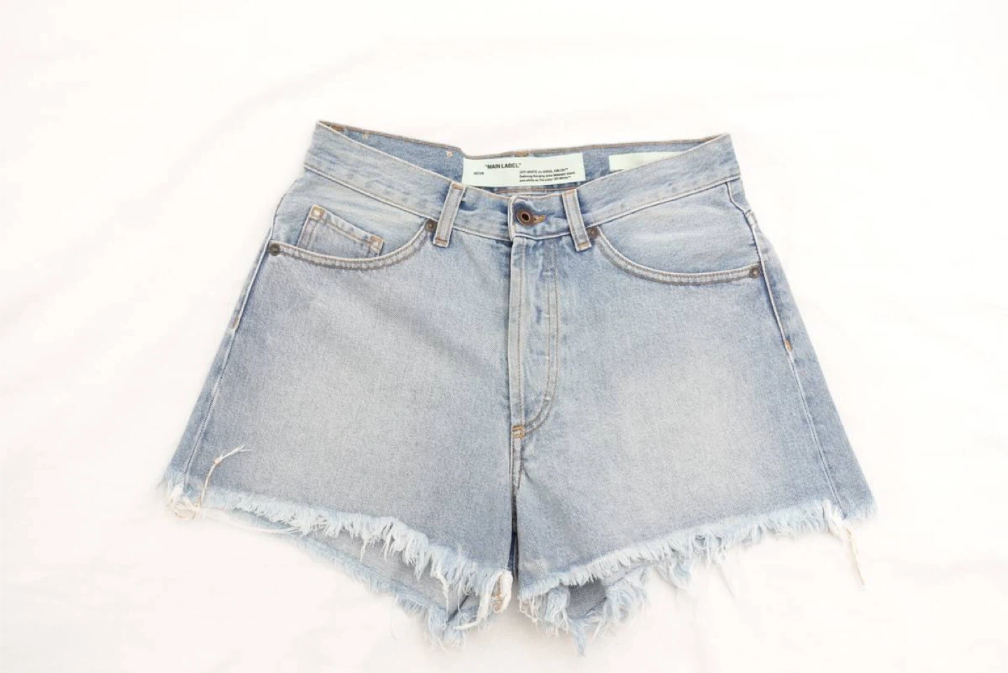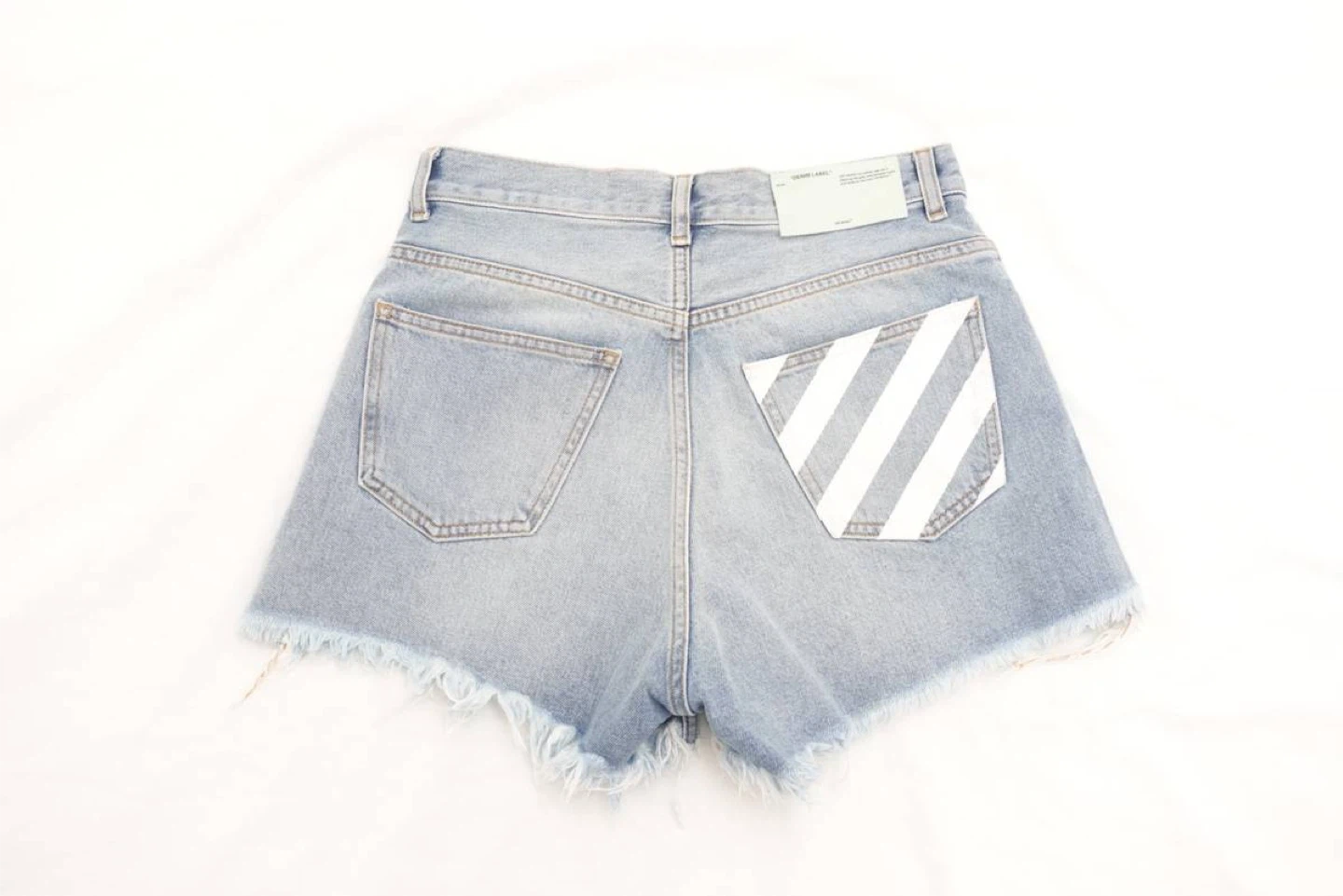 Off-White 2013 Denim Cut Off Shorts with Diagonal Stripe